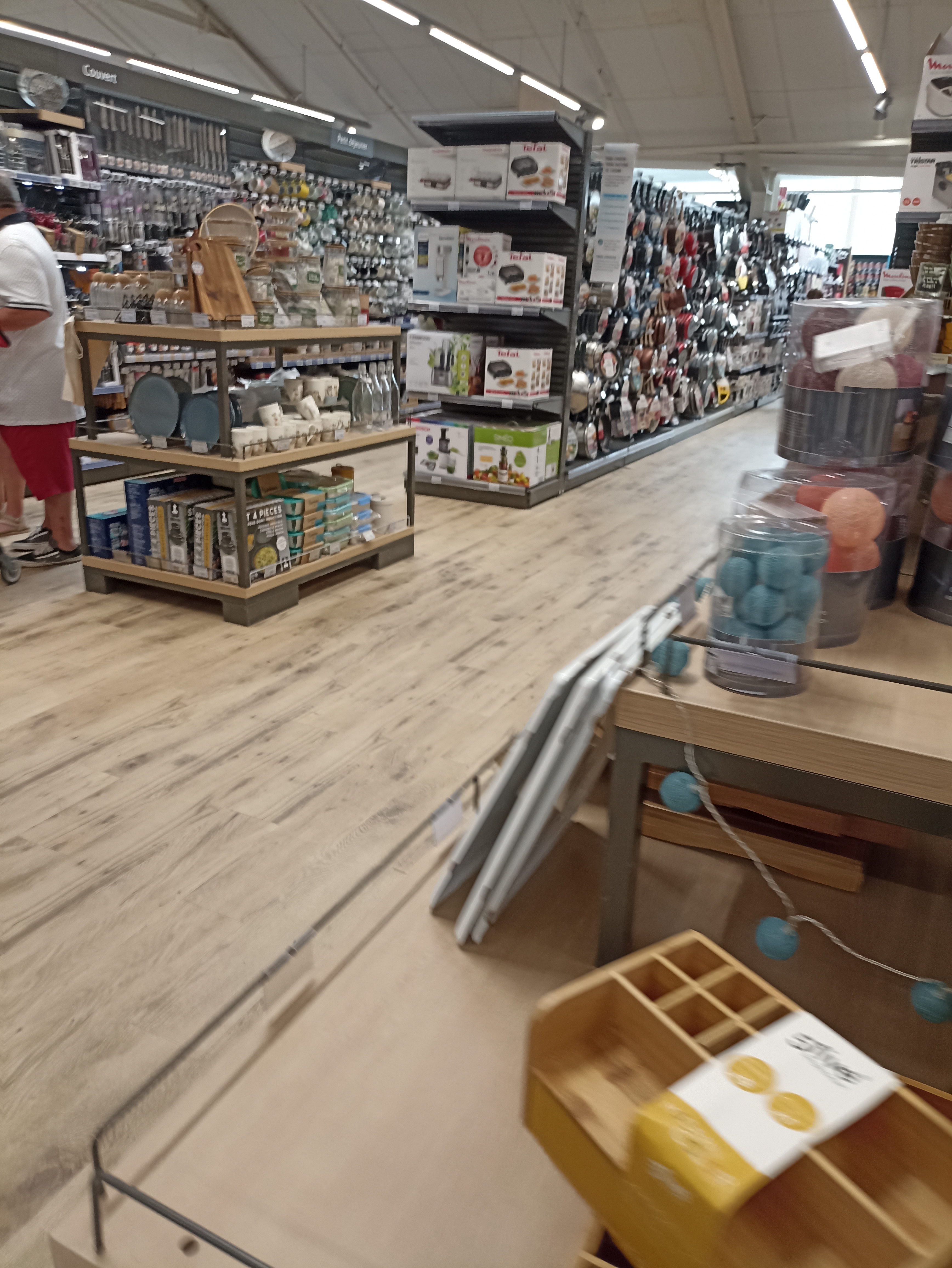Beau et grand magasin situé à Saint hilaire de riez, grand parking, sas d'entrée, a côté du Flunch, quelques caisses automatiques avec une personne qui surveille par écran de contrôle, zone de promotion a l entrée avec les articles du catalogue du moment, espace papeterie, journaux, magazines, livres pour tout le monde, podiums avec des articles en présentation, vaisselle, décoration, jardinage, bricolage, ustensiles, peintures, automobiles, accessoires divers, électroménager, jeux, jouets, rangement, espace vêtements hommes femmes enfants bébés, puériculture, hygiène, droguerie, lessive, maquillage, crème, maquillage, douche, rayon liquide, eaux, sodas, sirops, pétillants, vins rouge blanc rosé, apéritifs, alimentation yaourts, fromages, diététique, vegan, chocolat, viandes, boucherie, charcuterie, poissonnerie, fruits fleurs légumes, viennoiseries, boulangerie, difficile de tout énuméré, un magasin en face d électronique, ou j ai trouvé ma radio, et quelques articles abordables en rayons, dommage pour les produits locaux nous avons du chercher, tout n est pas au même endroit.
