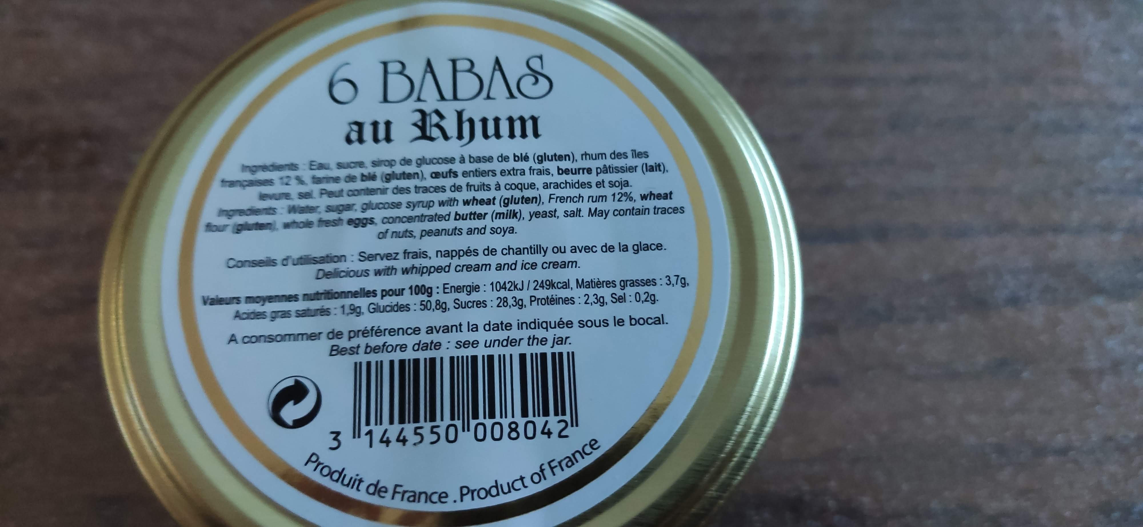Ne pas acheter ce produit : très loin du baba. Biscuits rassi baignant dans du sucre un peu aromatisé au rhum. C'est pas bon