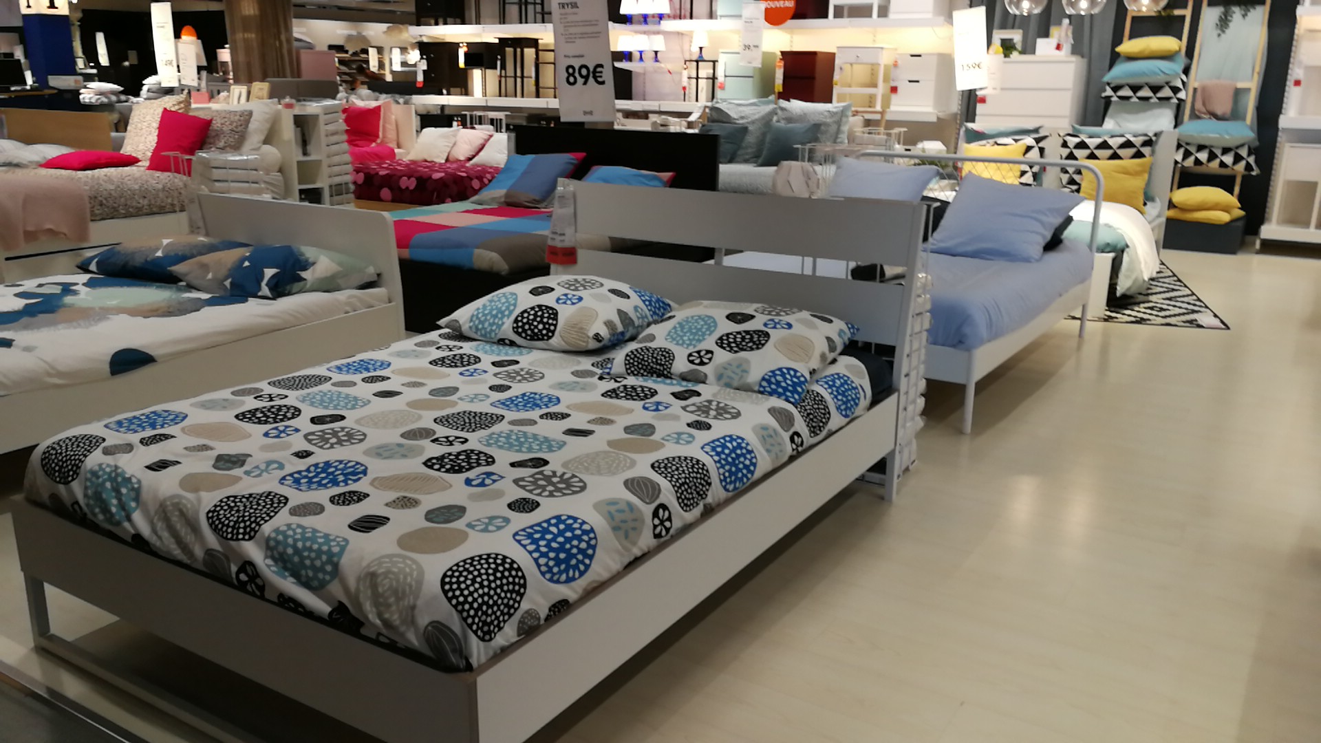 Comme tous les Ikea, on trouve presque tout : de la vaisselle, des cuisines, des chambres à coucher, de la literie, des oreillers, des meubles TV, des bibliothèques.. et puis on peut déjeuner sur place. Mais comme tous les Ikea, il faut passer dans tous (ou presque) les rayons avant de pouvoir sera servir et régler ses achats