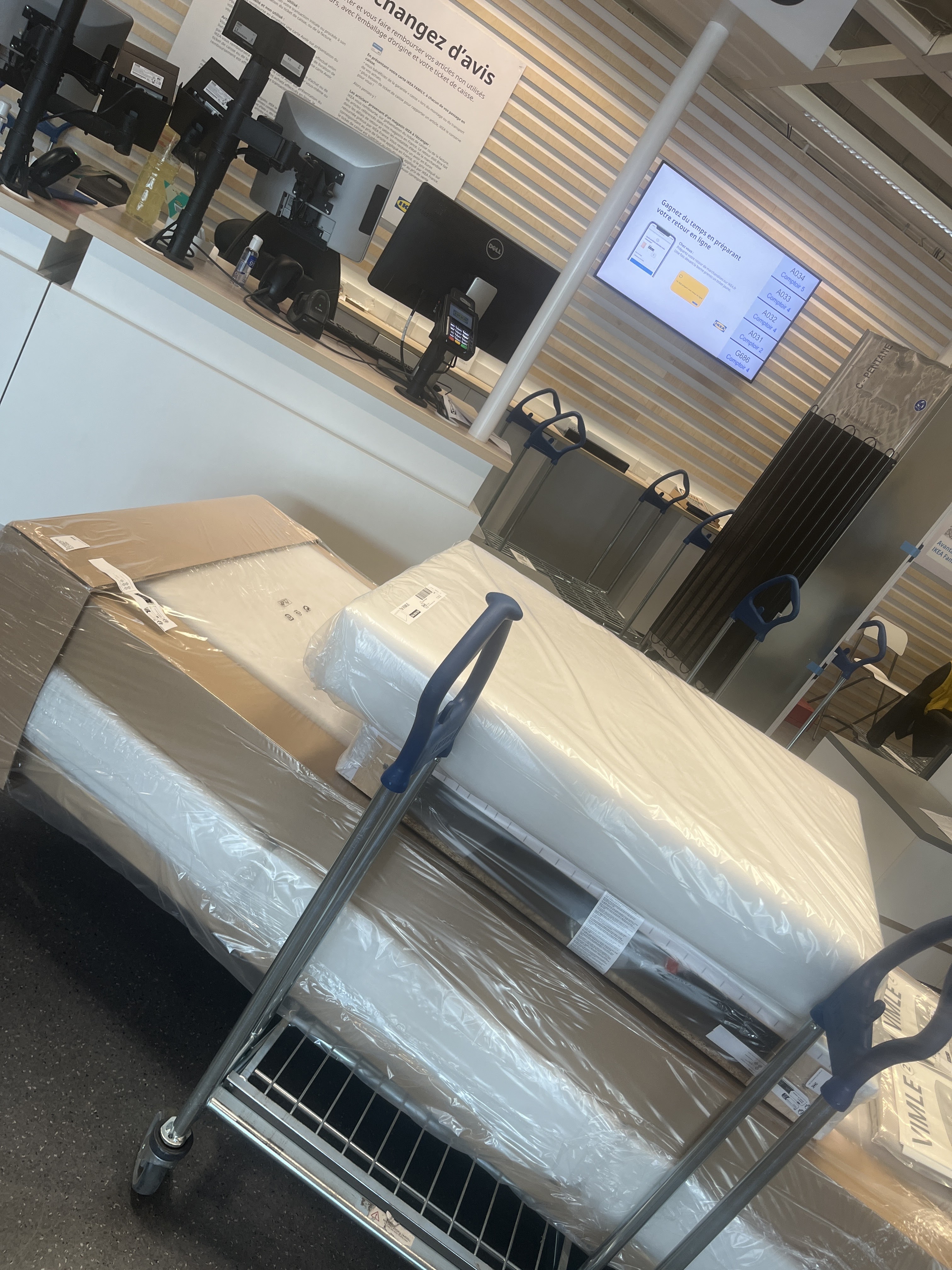 IKEA est fidèle à lui même , toujours aussi complet. On y trouve de tout et c’est bien organisé. Impossible de repartir sans des petits gâteaux à la cannelle. Notre nouveau matelas a été rapidement disponible en moins de 10 minutes et l’emballage était très pratique.