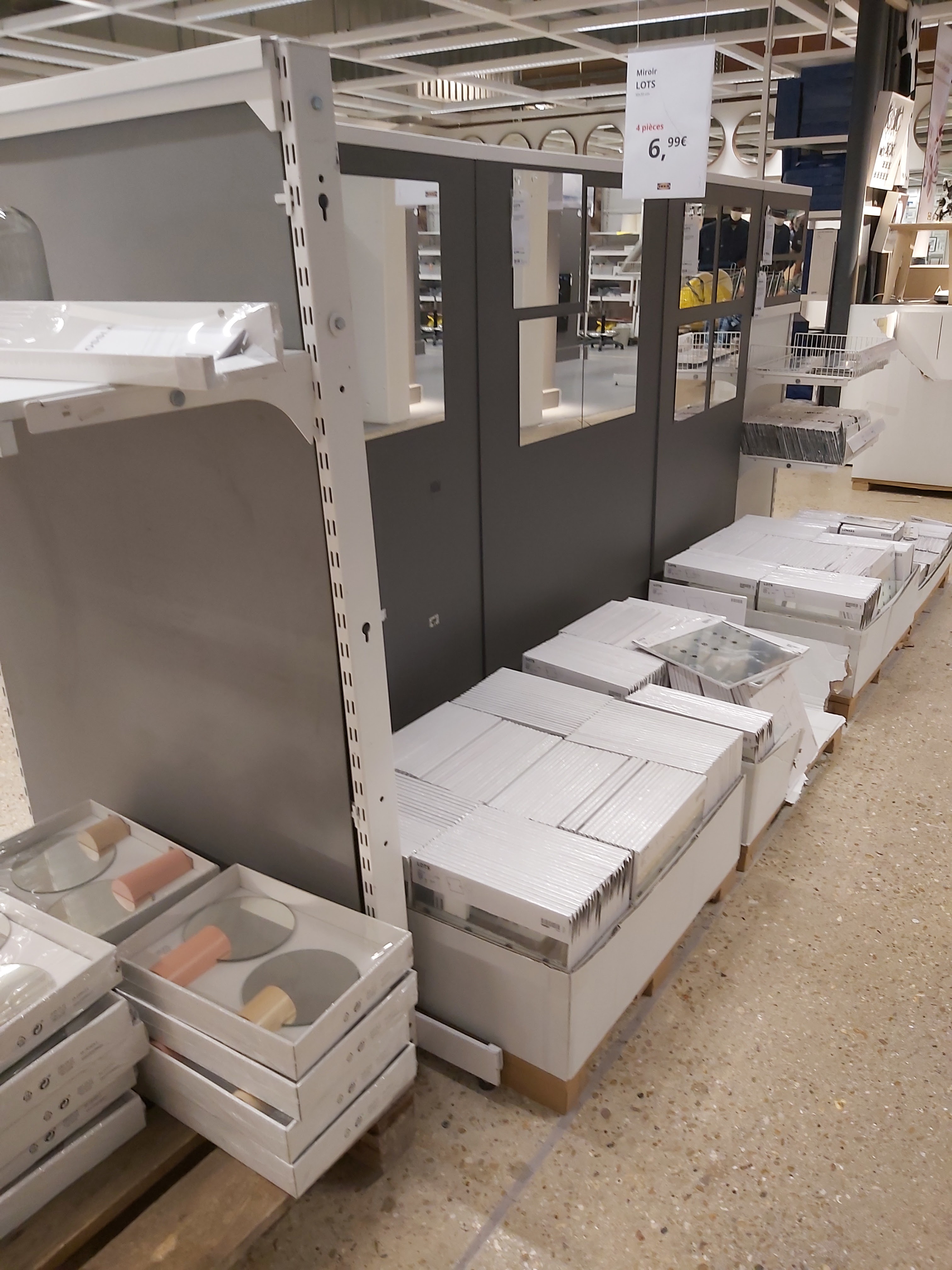 Au top le magasin il est bien ranger je trouve juste dommage qu'il n'y ait pas de borne pour trouver des produits dans toutes ces allées on s'y perd. Ensuite lord de ma visite je souhaitais prendre des étagères d'angle pour ma sdb. 10 étaient disponibles sur le site mais 0 en rayons et personne pour me les indiquer.