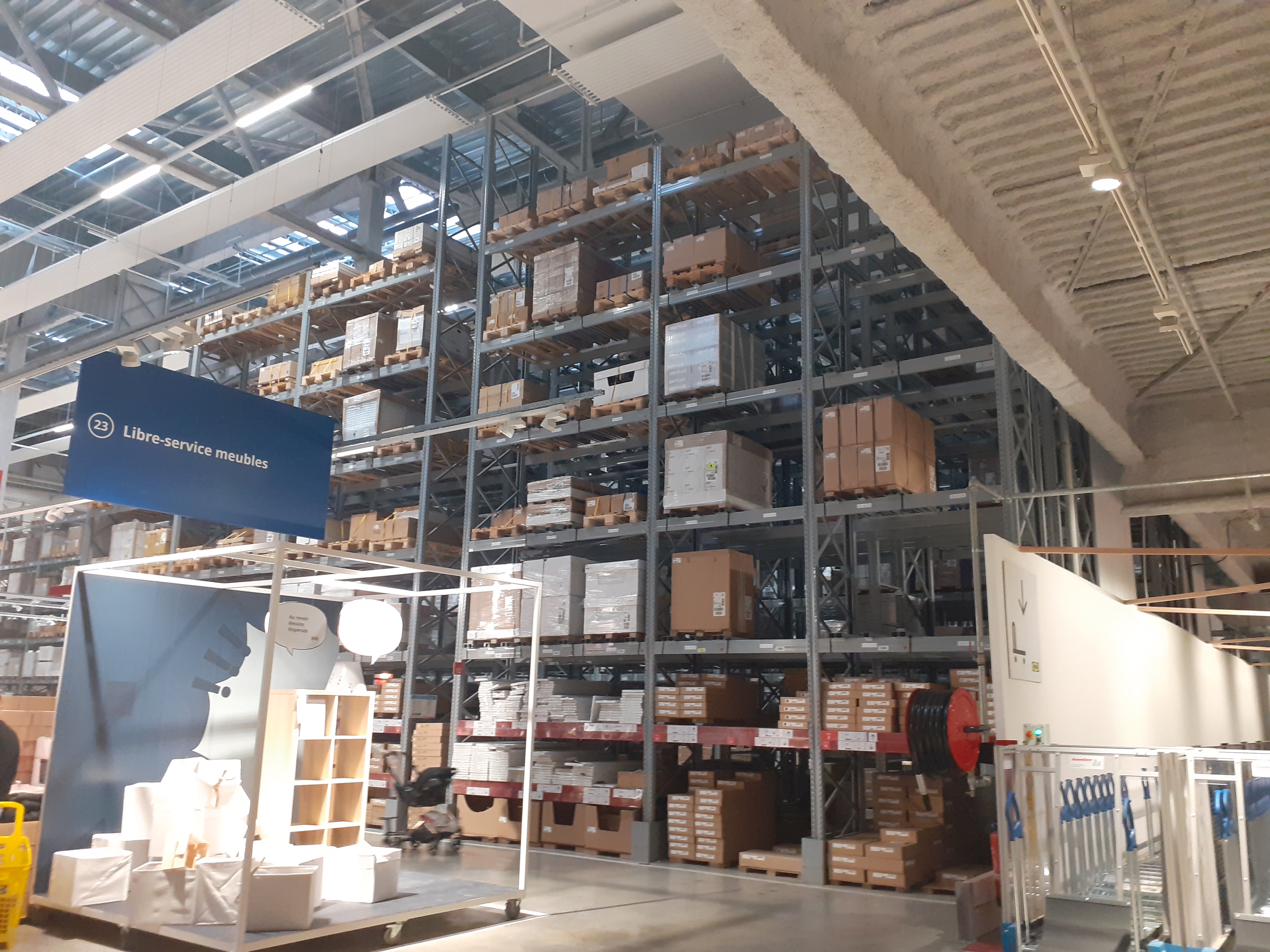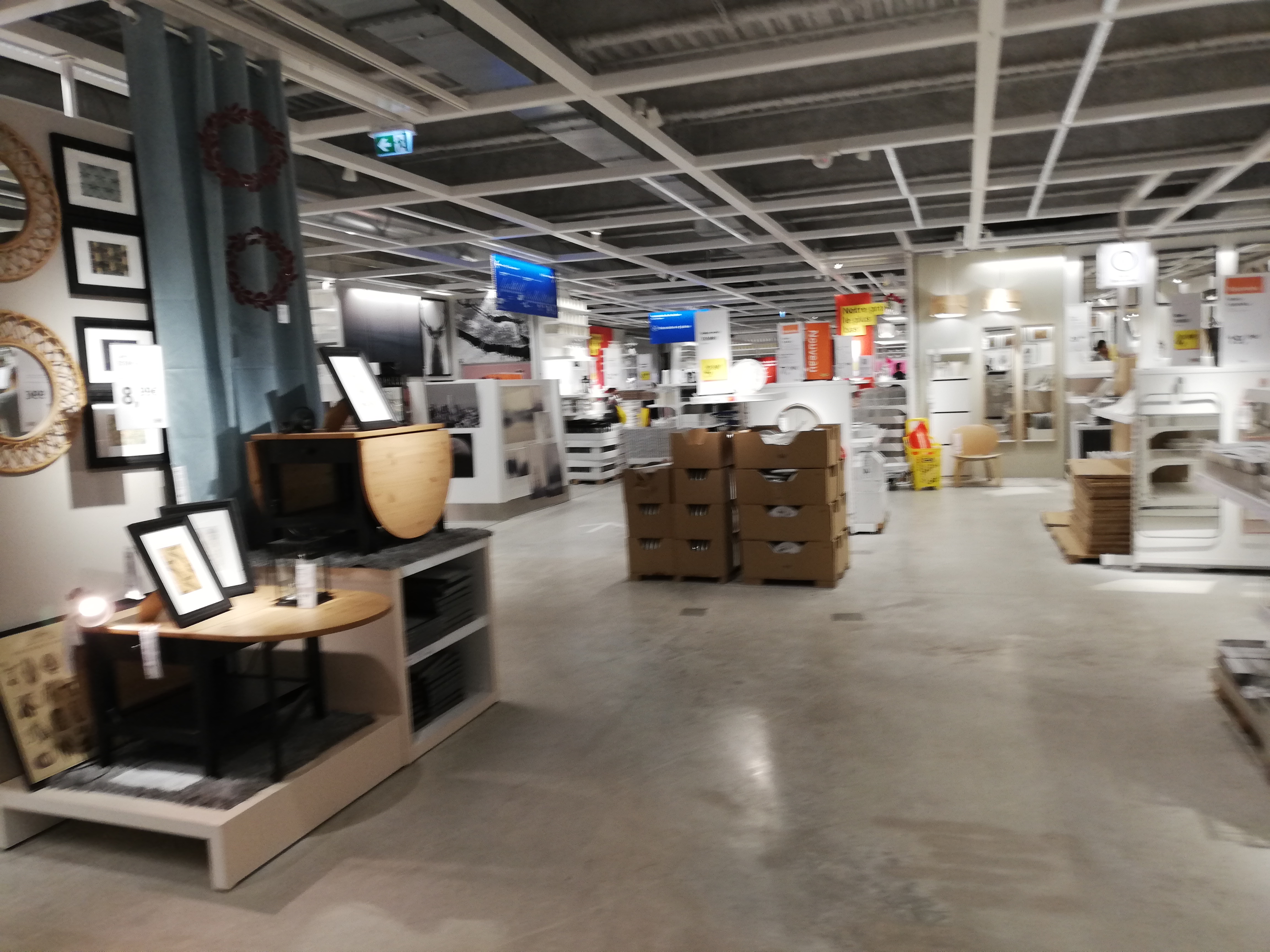 J'ai eu du mal à m'y retrouver et j'ai dû faire marche arrière pour retrouver les produits que je cherchais. Le personnel est à l'écoute et accueillant. Malheureusement, j'ai été mal renseigné malgré ma demande répétée auprès de plusieurs employés et il m'a été difficile de régler mon problème de commande (40 minutes pour ce faire, car j'avais certains produits scannés pour une commande faite en ligne et d'autres pour une commande passée en magasin, et il fallait amalgamer les deux. Et il ne semble pas prévu de scanner les articles en magasin pour se les faire livrer ensuite. Il faut alors attendre au service réclamations pour payer une livraison). J'ai payé cette livraison à domicile et n'ai pas reçu les produits. Le transporteur m'a dit que la commande avait été annulée car les meubles ne lui avaient pas été présentés au dépôt d'Ikea. Le seul mail que j'ai reçu d'Ikea le soir est un mail automatisé disant que la livraison n'avait pas pu se faire (merci, j'étais au courant puisque j'attendais chez moi). J'ai appelé le service clients le lendemain pour m'entendre dire que la livraison venait d'être reprogrammée à un autre jour mais sans me consulter au préalable. Comme je travaille ce jour-là, on a donc reporté à un jour ultérieur. Je devrais les recevoir ce 9 novembre, donc 15 jours après mes achats en magasin. Au final, le lieu est propre, un peu labyrinthique mais je pense que c'est une question d'habitude, le self est très bien et pas cher, le personnel sympathique (même celui aux caisses automatiques qui passait son temps à texter sur son portable). Mais je pense que le personnel manque un peu de formation car aucun n'a pu vraiment me donner la bonne solution à mon problème. Si je devais le refaire, j'irais en magasin voir les produits et je les chercherais dans l'appli pour payer la livraison comme si je commandais de chez moi.