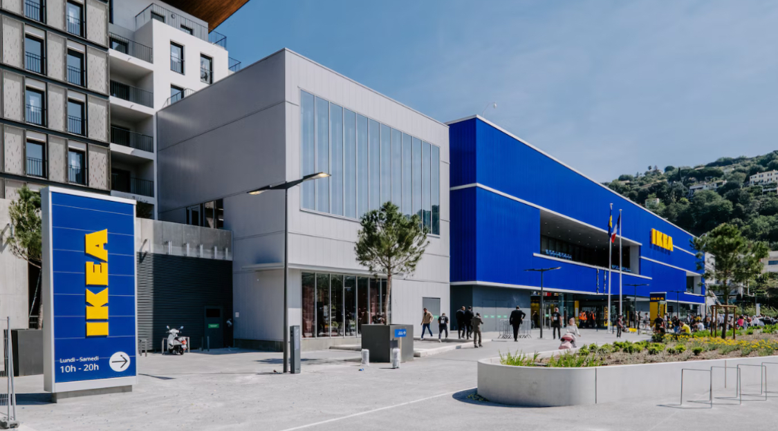 Magasin Ikea classique. Un peu plus petit que celui de Toulon. Pratique car juste à côté de l'arrêt du Tram et à côté du stade Allianz Riviera. 3h de parking gratuit sinon. Belle cafétéria avec terrasse. Ça reste un bon magasin à recommander pour l'ameublement