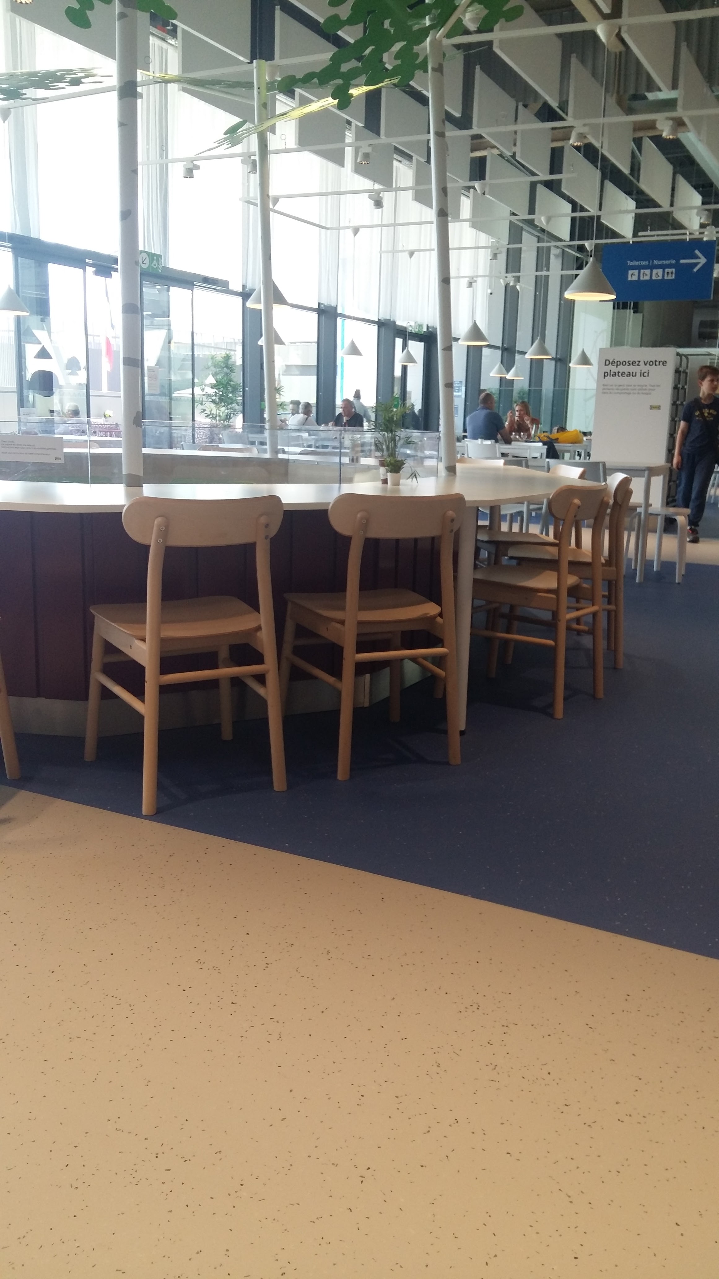 Identique aux autres ikea de France et du monde... Je regrette que les passages/ raccourcis permettant d'éviter de suivre bêtement le chemin pré défini ne soient pas mieux identifiés. Je n'en ai croisé qu'un seul.... Restaurant très vaste et lumineux avec énorme comptoir. Chacun commandant aux bornes ce qui lui plaît attend que son numéro de commande soit appelé