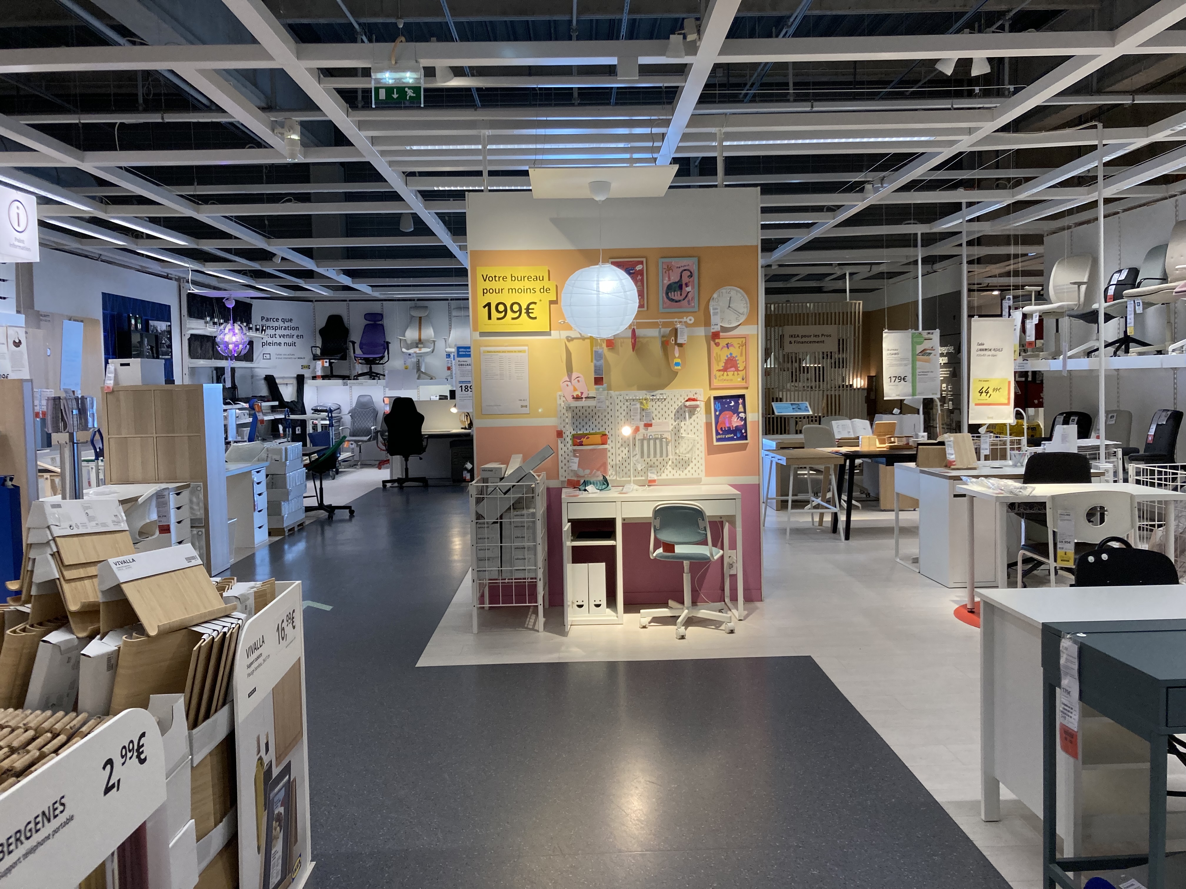 J'ai trouvé le magasin du rez de chaussée très peu achalandé surtout les luminaires, des housses de couettes limitées dans les tailles mais dans l'ensemble mon épouse a trouvé ce dont nous avions besoin merci Ikéa