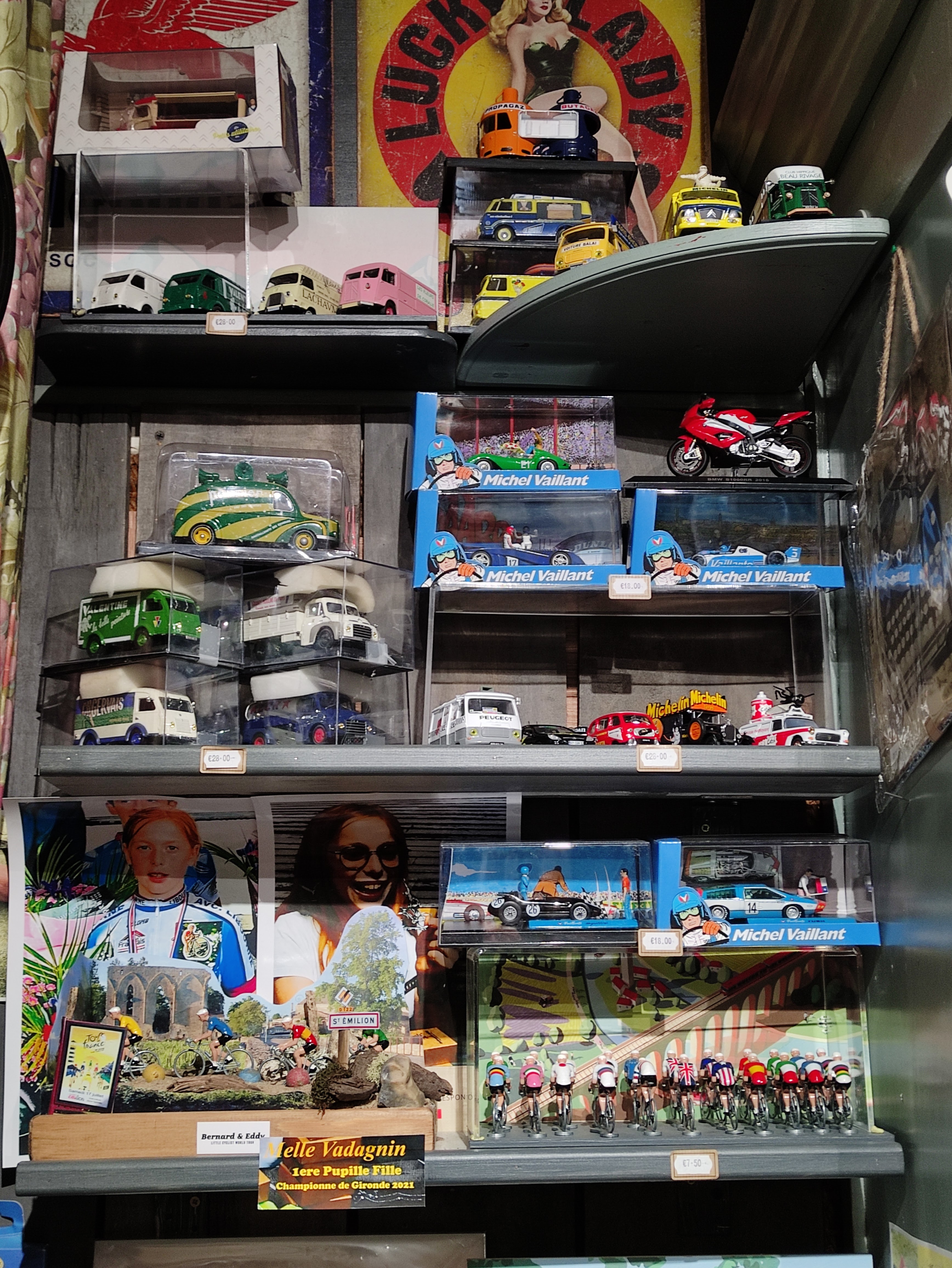 Nous sommes entrés en ayant vu des petites figurines de vélo exposées en vitrine... Boutique très sympa... un vendeur passionné et d'une très grande gentillesse !
