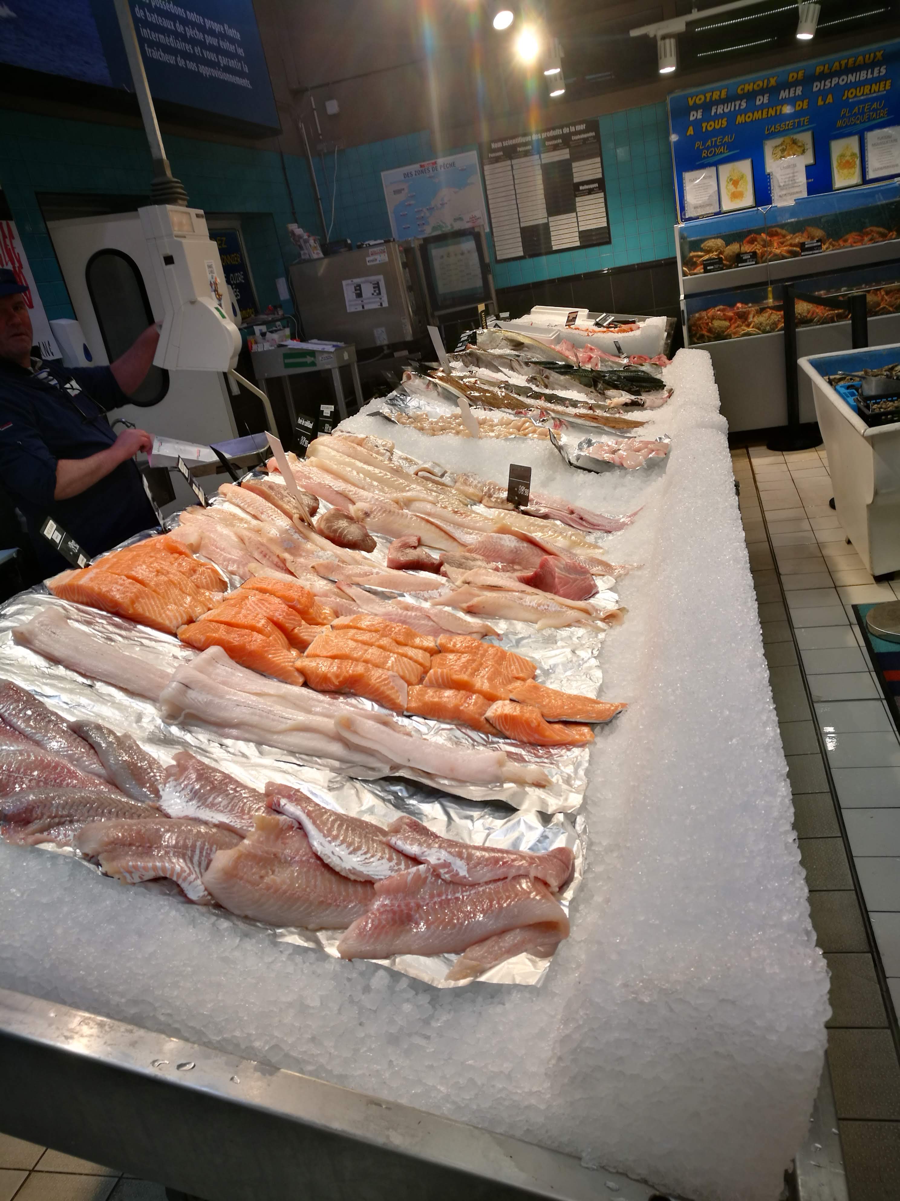 Bien achalandé, en particulier pour le poisson et les crustacés