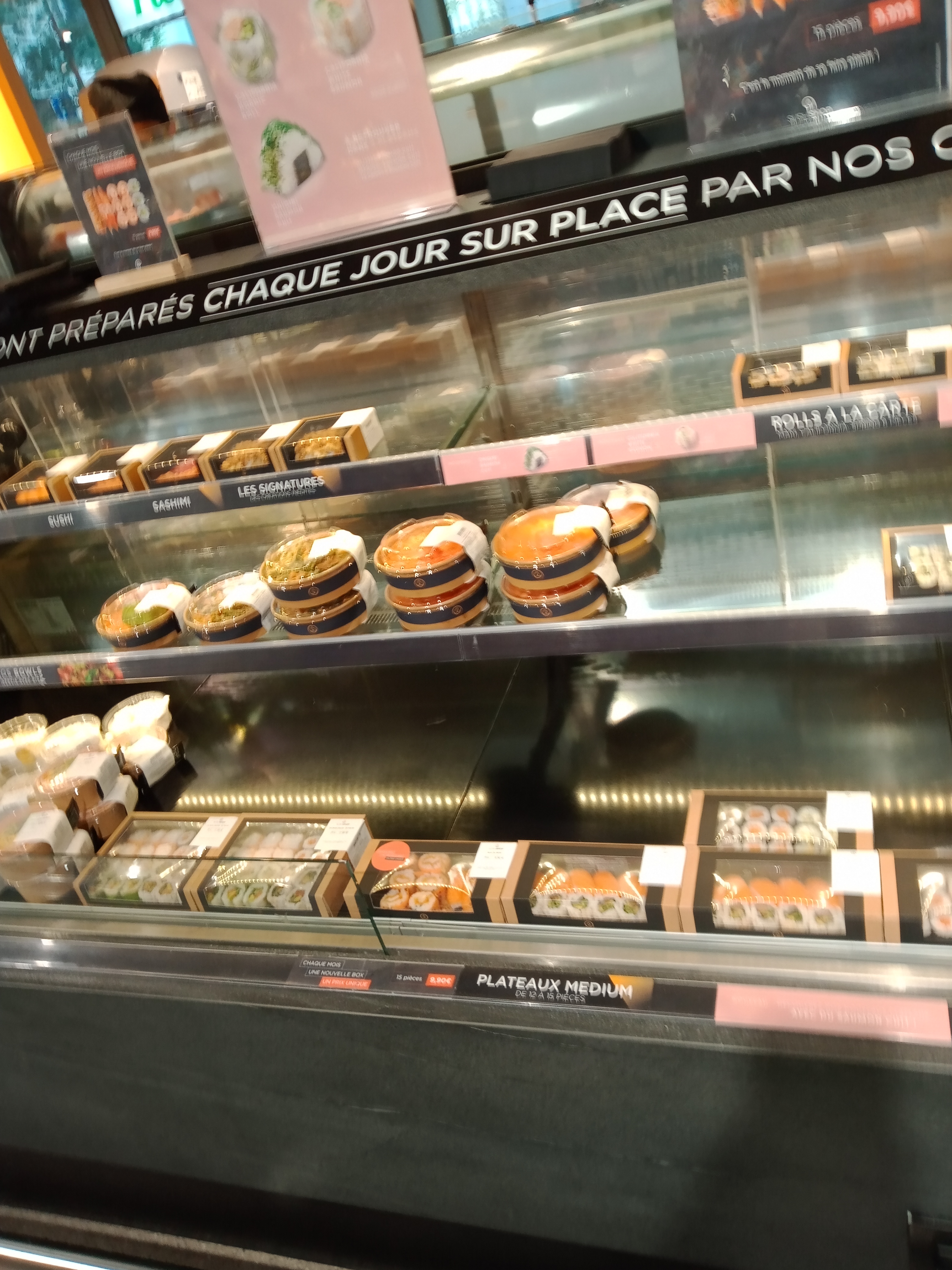 100 % caisses automatiques. Quelques erreurs de prix (en défaveur du client) ou produits frais pas frais (fruits découpés). Stand Sushi Shop appréciable en revanche :)