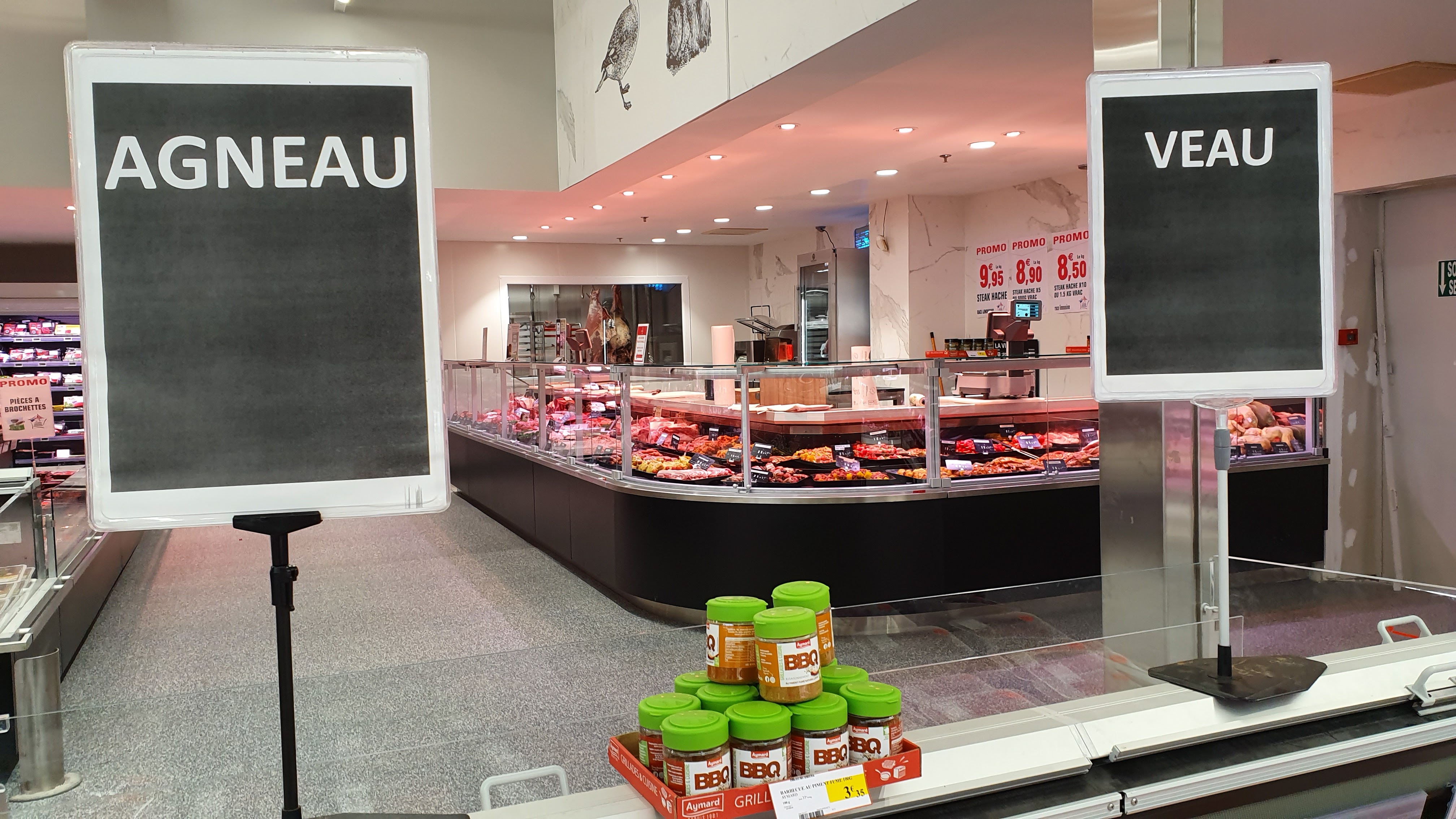Le rayon boucherie est un vrai régal avec une viande de qualité déboucher avec gants et chapeau très propre je recommande
