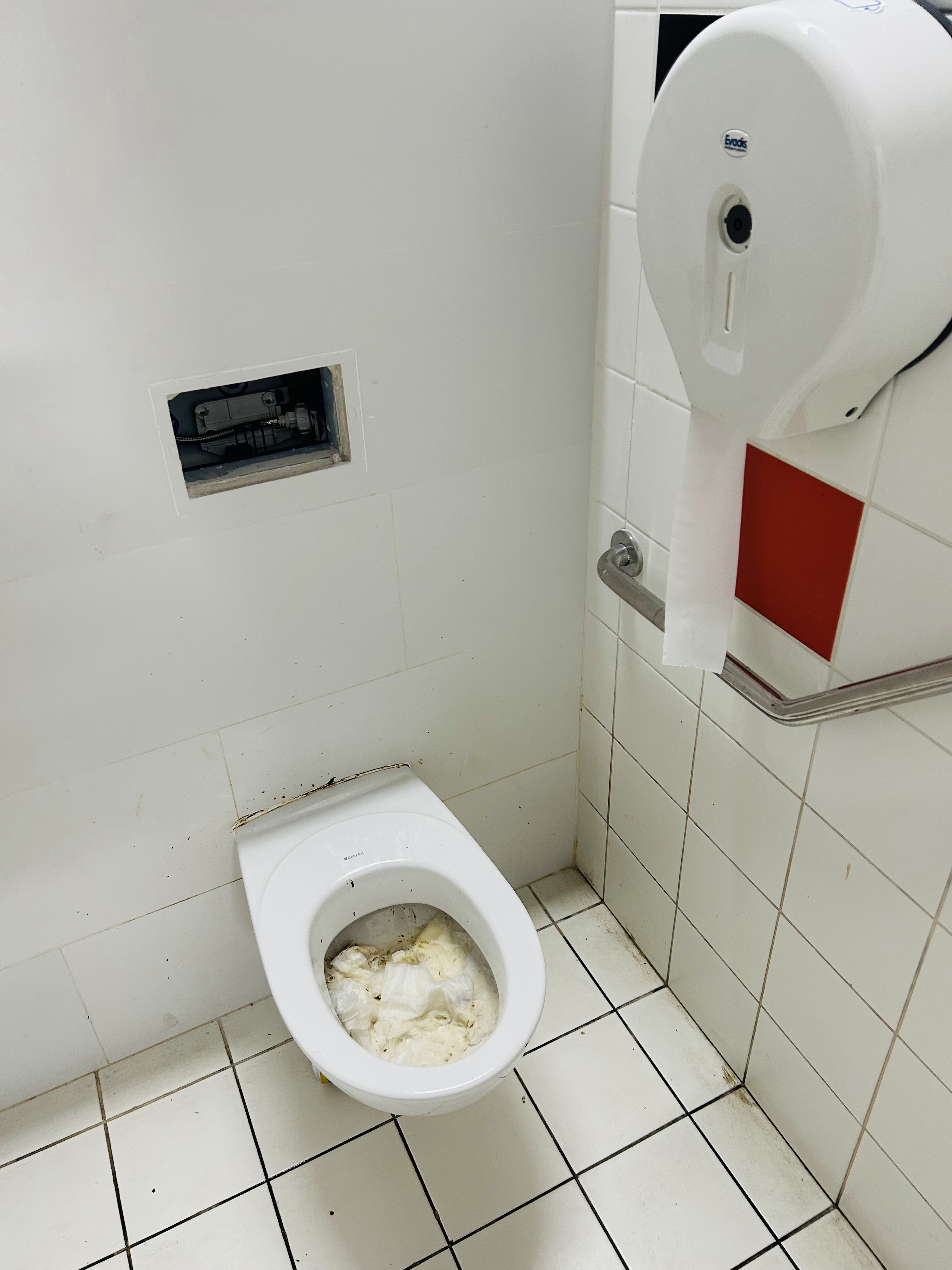 Toilette hyper sal , horrible excréments sur les murs, 3 WC 1 avec du papier., urines sur le sol.