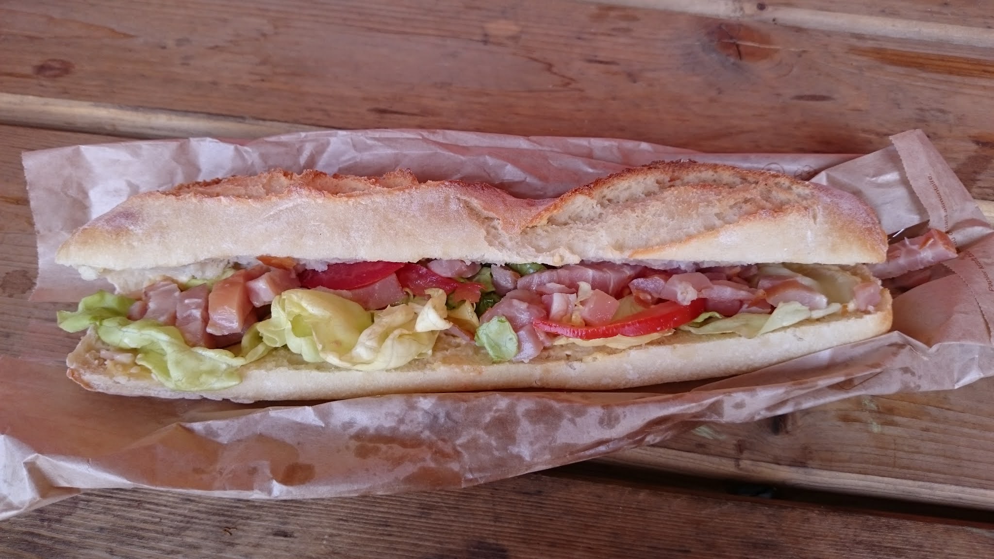 Note : 0/5. Très déçue! Je travaille à proximité de cet hypermarché, et un midi de cette semaine j'ai pris un sandwich à la boulangerie qui se trouve dans la galerie marchande. Le sandwich que j'ai acheté était un poulet crudité. Au moment de l'achat, j'ai interpelé la vendeuse car je trouvais le sandwich bizarre, la viande me faisait penser à de la viande de porc, la vendeuse m'a indiqué qu'ils avaient changé leur recette pour ce sandwich : ils ont remplacé les morceaux de viandes de poulet par des lardons de poulet. Au moment de le manger (je n'ai pas mangé sur place), je me suis rendu compte que les lardons de poulets étaient encore crus... (voir les photos) par conséquent le sandwich était immangeable dans l'état! Par manque de temps, je n'y suis pas retournée pour ramener le sandwich et faire une réclamation, donc je me manifeste par ce biais là. De part la mauvaise qualité du travaille fournit pour la préparation de celui-ci et part le manque de vérification au moment de la mise en rayon, le sandwich a été jeté (bravo le gaspillage alimentaire et le non respect de l'animal, sans parler des 3,50euros perdu pour ne rien manger). Personnellement, je n'y retournerai pas et je ne recommanderai pas car au final de par cet exemple, cette boulangerie n'a pas l'air soucieuse de la qualité des produits vendus. Il s'agit tout de même de la qualité alimentaire qui à notre époque a une place très importante dans notre société.