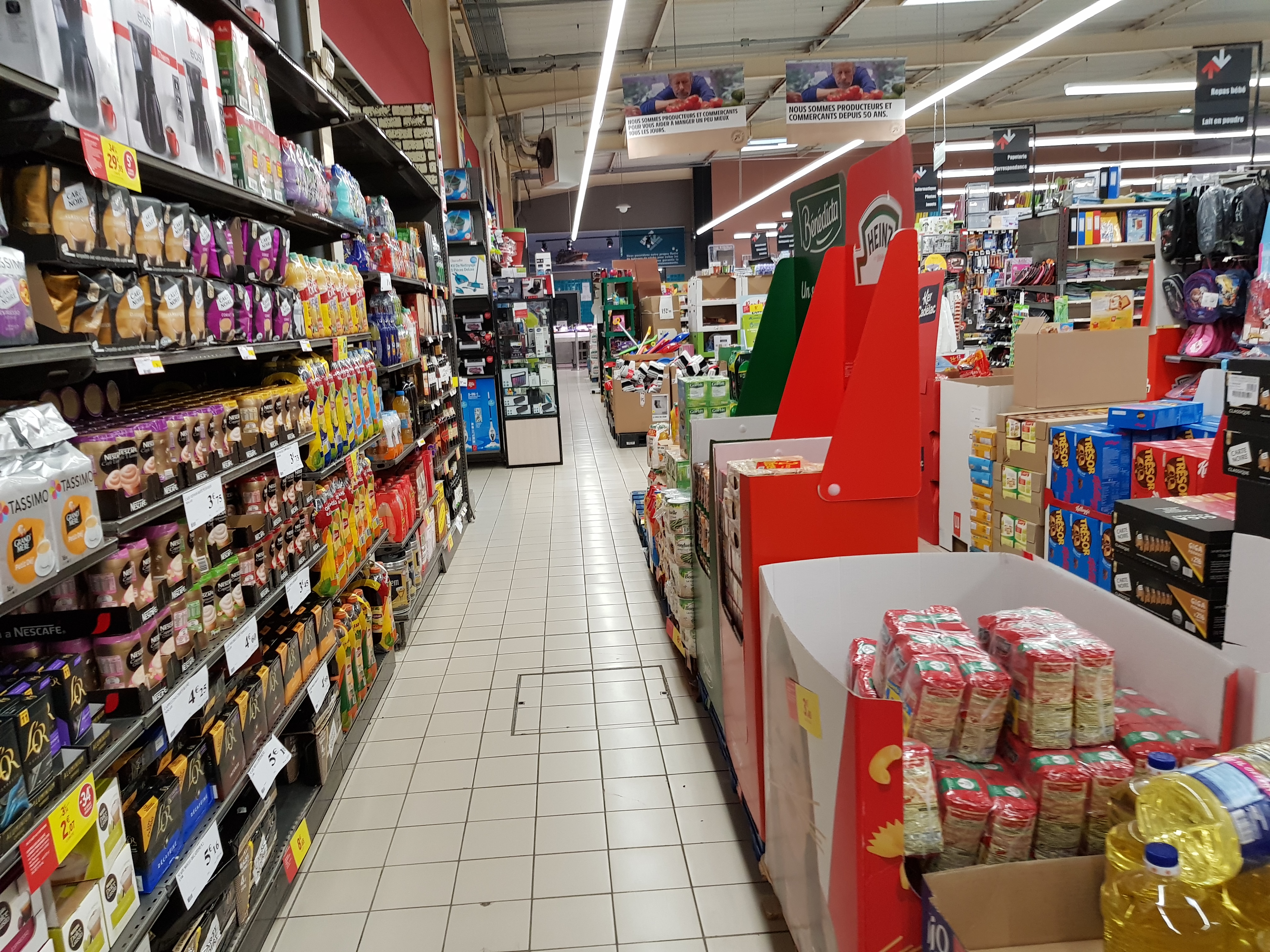 Un Intermarche comme les autres. Pas facile de circuler avec le caddy.