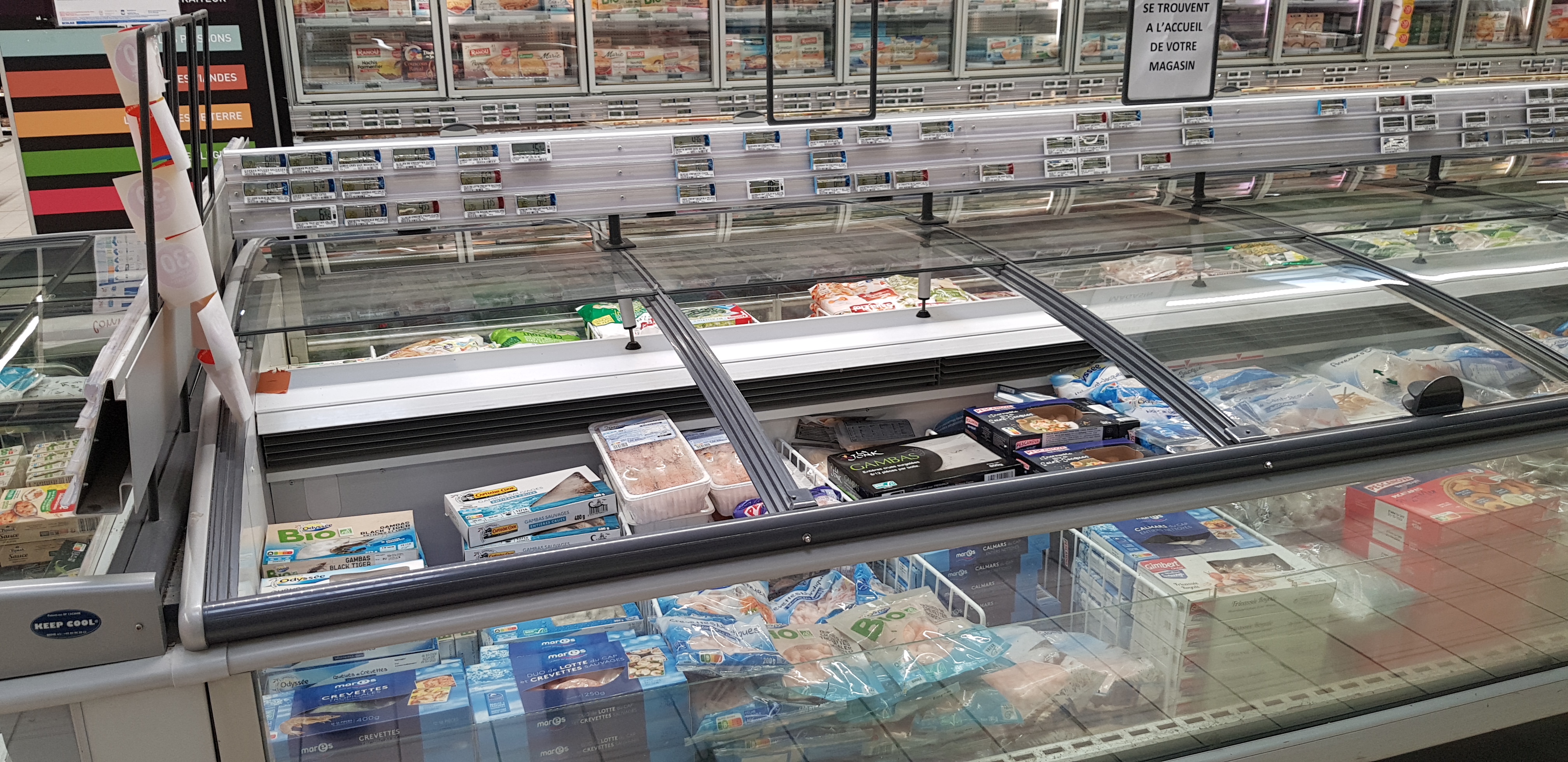 Bonjour je trouve inadmissible d'avoir décroché de torchon pour ouvrir les portes rayon frais et de pas avoir de porte du côté congélation crevettes moules il y a pas encore de contrôle bizarre