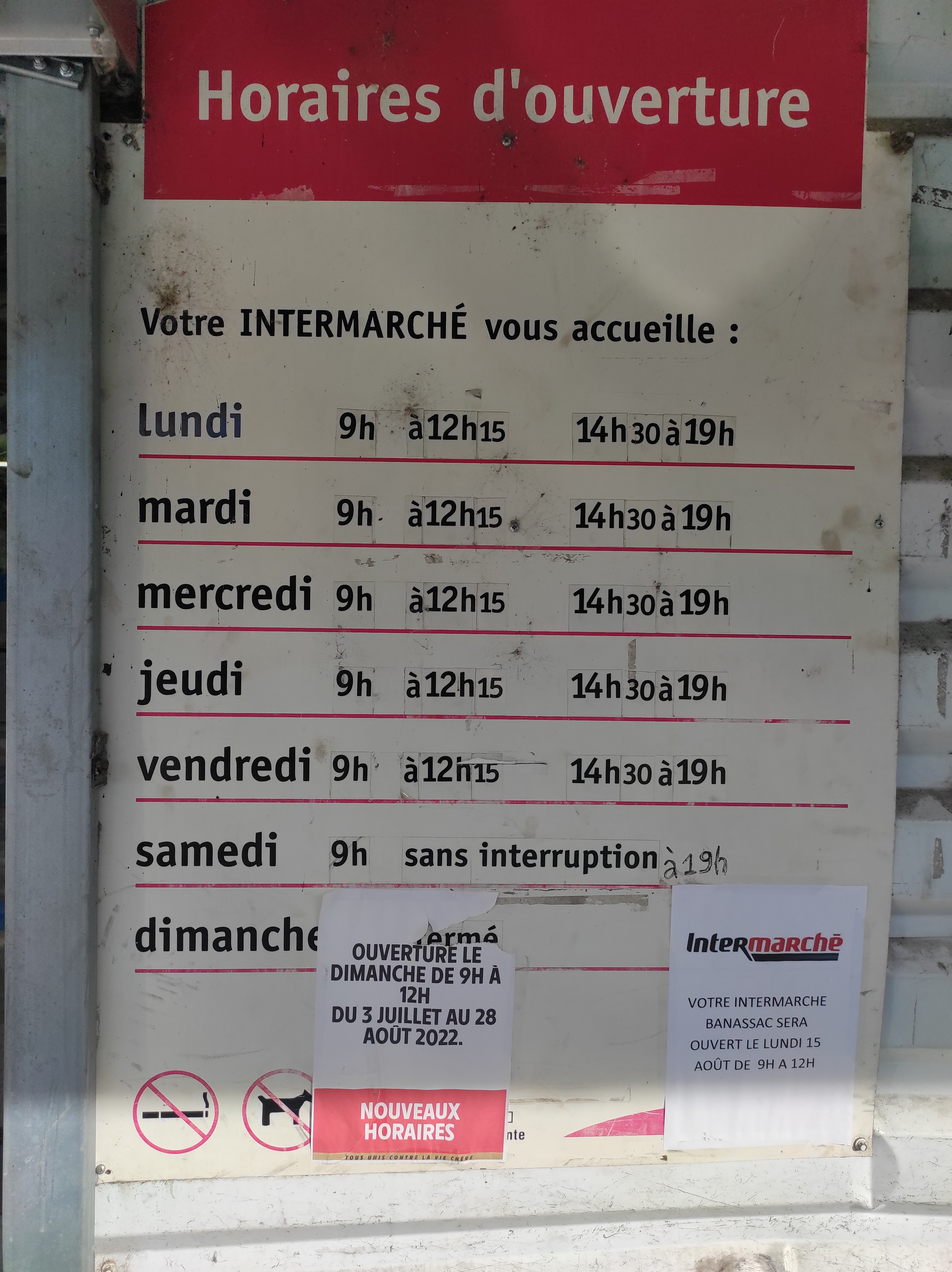 Nette dégradation! Au delà du fait que le magasin est vétuste, sans rénovation depuis des années , que le parking est très mal conçu , dangereux, et que l'accès à celui-ci peu fonctionnel, on trouvait jusque là tout ce qui était nécessaire! Cette année , les rayons sont souvent très peu achalandés (photos à disposition)..., certains produits ne sont plus recommandés,... toute la semaine du 14 juillet, TOUS les rayons de produits frais ont été en panne..... Seul, le personnel est sympathique (d'ou l'attribution dune étoile) Donc très mauvaise gestion de ce petit supermarché qui a la chance de ne pas avoir de concurrence à proximité directe! Heureusement les deux petites épiceries locales de Banassac et La Canourgue compensent par leur gentillesse et leurs efforts et récupèrent heureusement la clientèle très déçue par Intermarché!