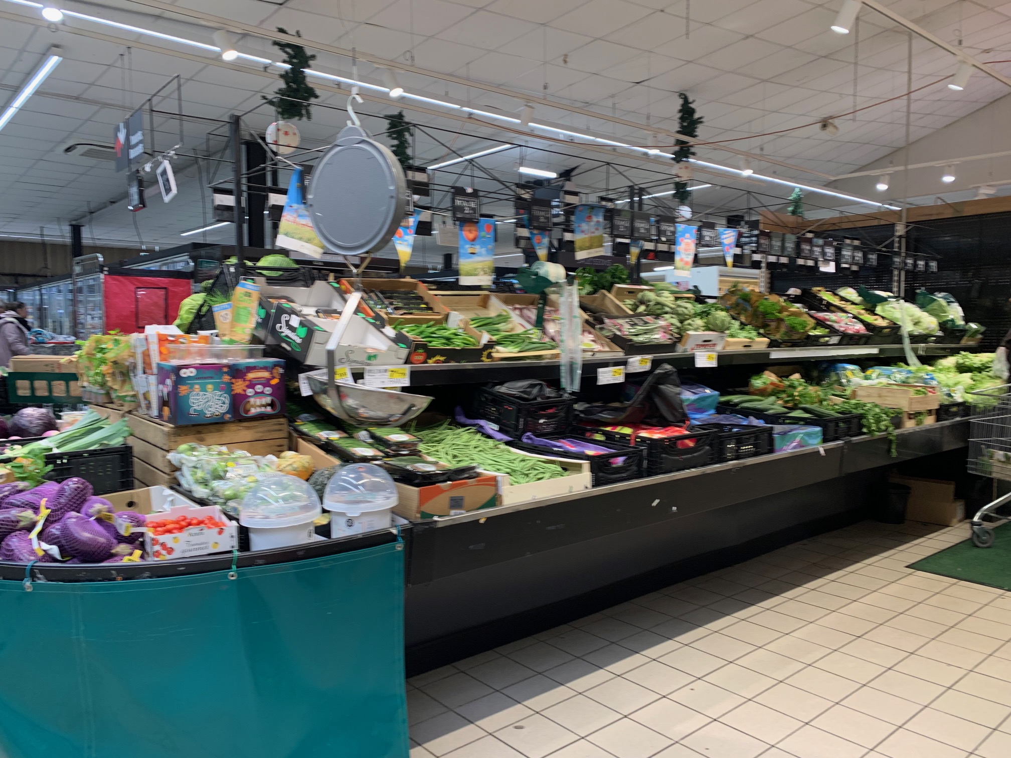 Vieillot, toujours encombré par des mises en rayon permanentes. A quand une balance automatique aux fruits et légumes et fruits secs ?