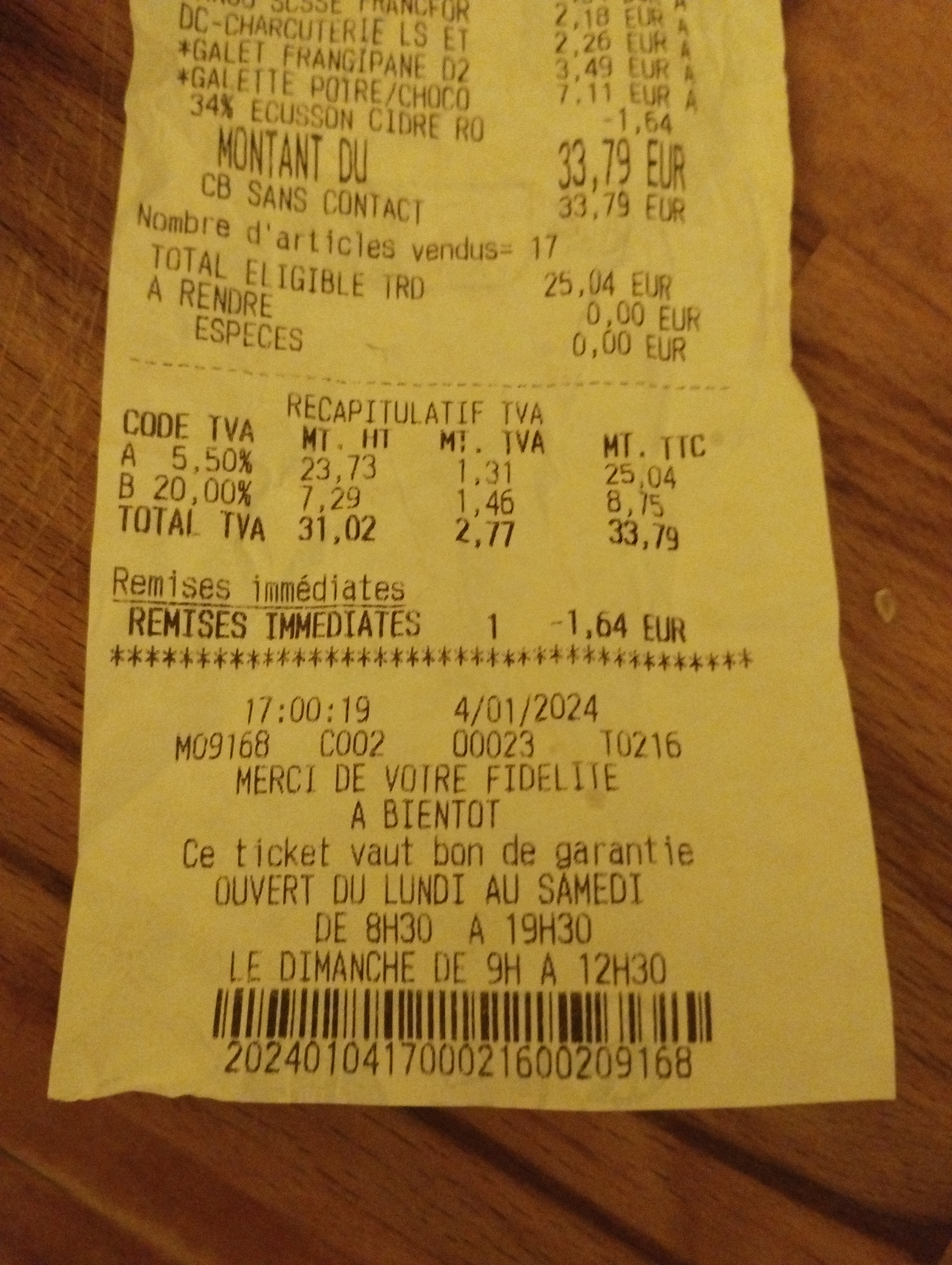 Attention aux prix affichés, et ceux figurants sur le ticket de caisse. En contrôlant le ticket de caisse à la maison il s'avère qu'il a erreur de 15 euros trop tard pour porter réclamation. EN conclusion contrôler bien le ticket de caisse.