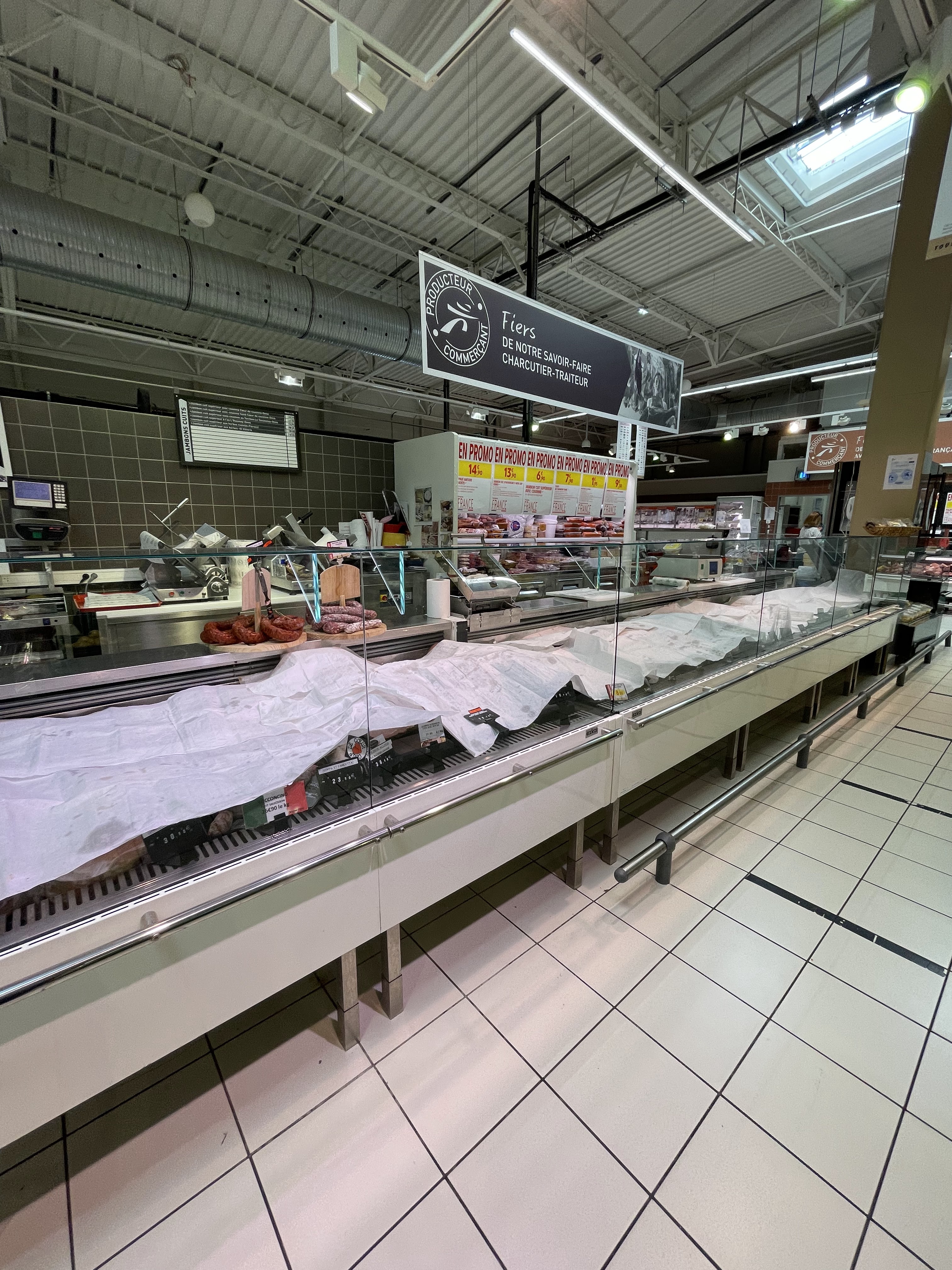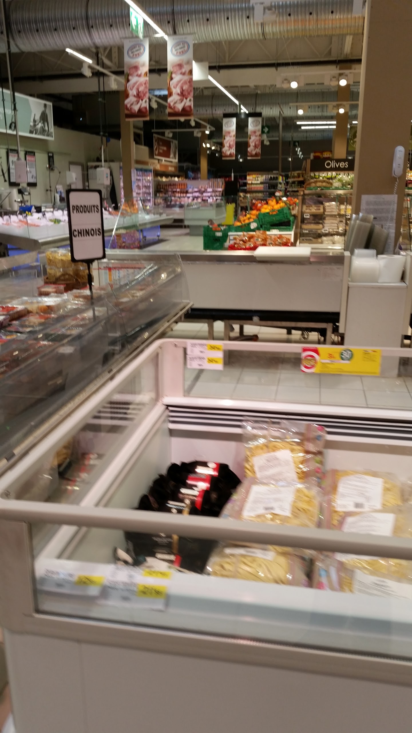 Bien sûr, on trouve tout ce qui est bien pratique pour la ménagère qui fait ses courses. Néanmoins, personnellement je ne trouve pas très engageant les rayons poissonnerie et boucherie. Il me semble qu'il y a beaucoup de progrès à réaliser.