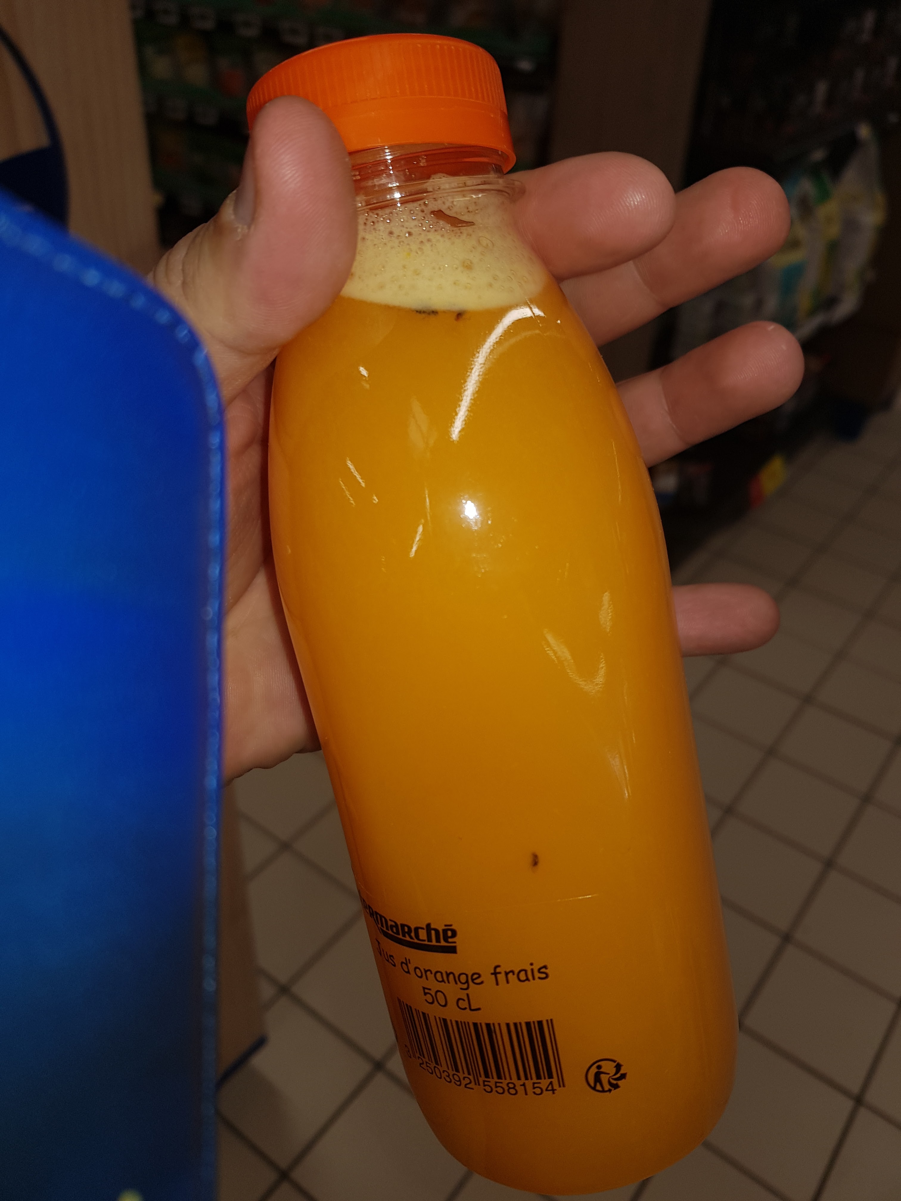 Bonjour ce matin je voulais m'acheter un jus d orange frais à la machine voici se que j ai trouvé la dame ma dit que elle la lave la machine hier