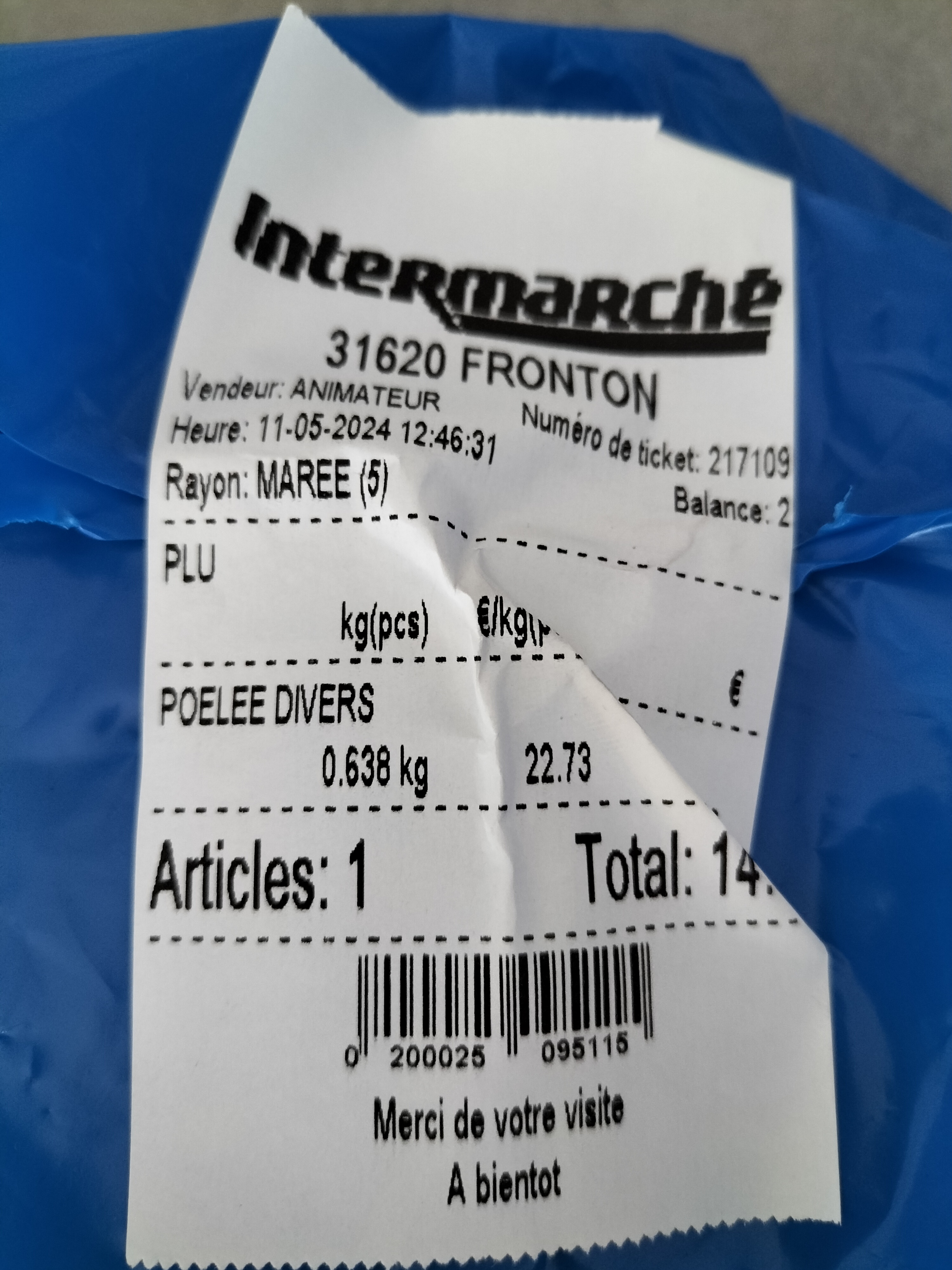 Pas contente du poisson acheté le 31 mai
