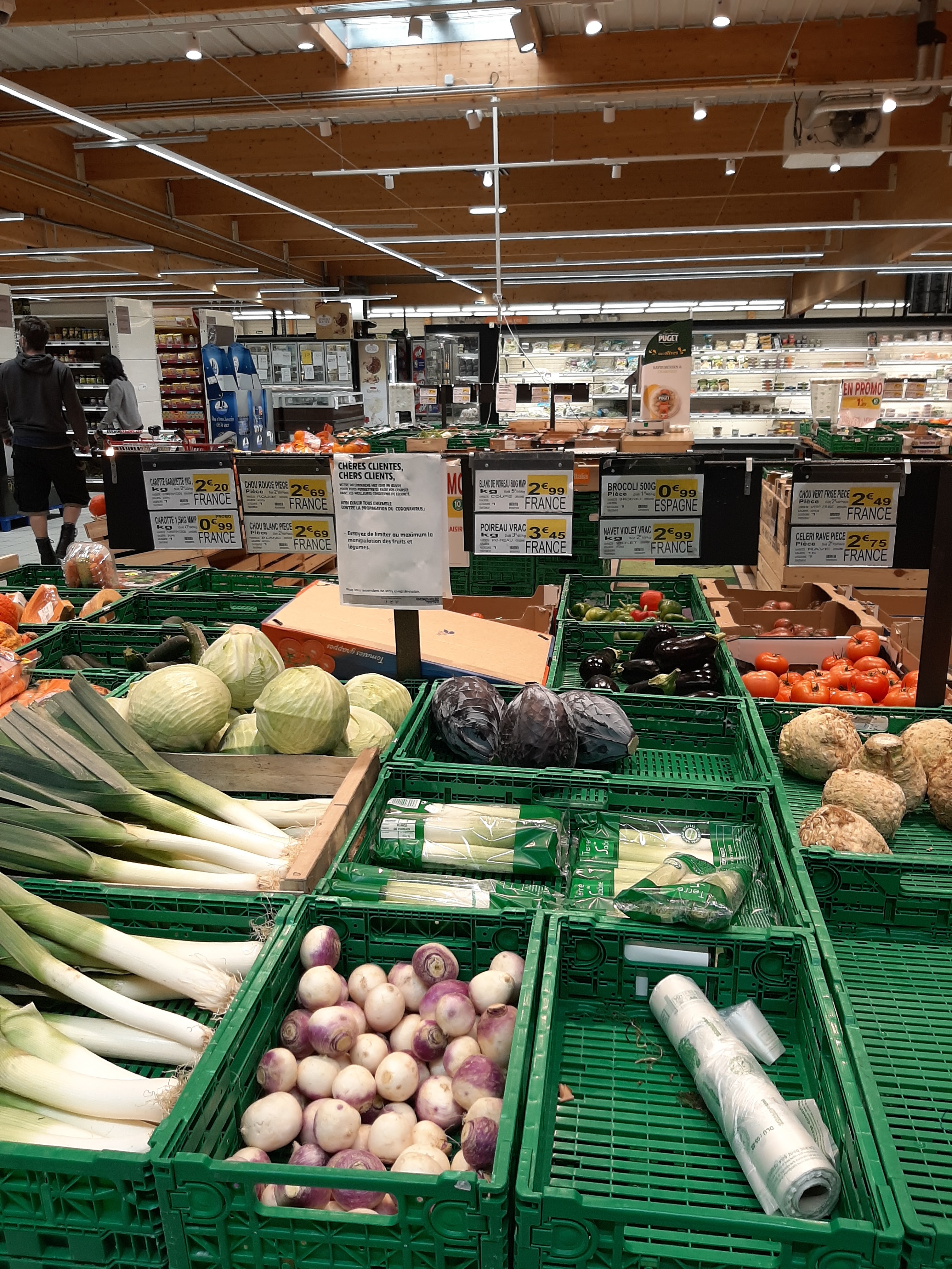 Pourquoi pas plus de légumes locaux ? Dommage... Sinon ok, mais il serait peut-être temps de changer 🛒 et abris de 🛒. Sales+++