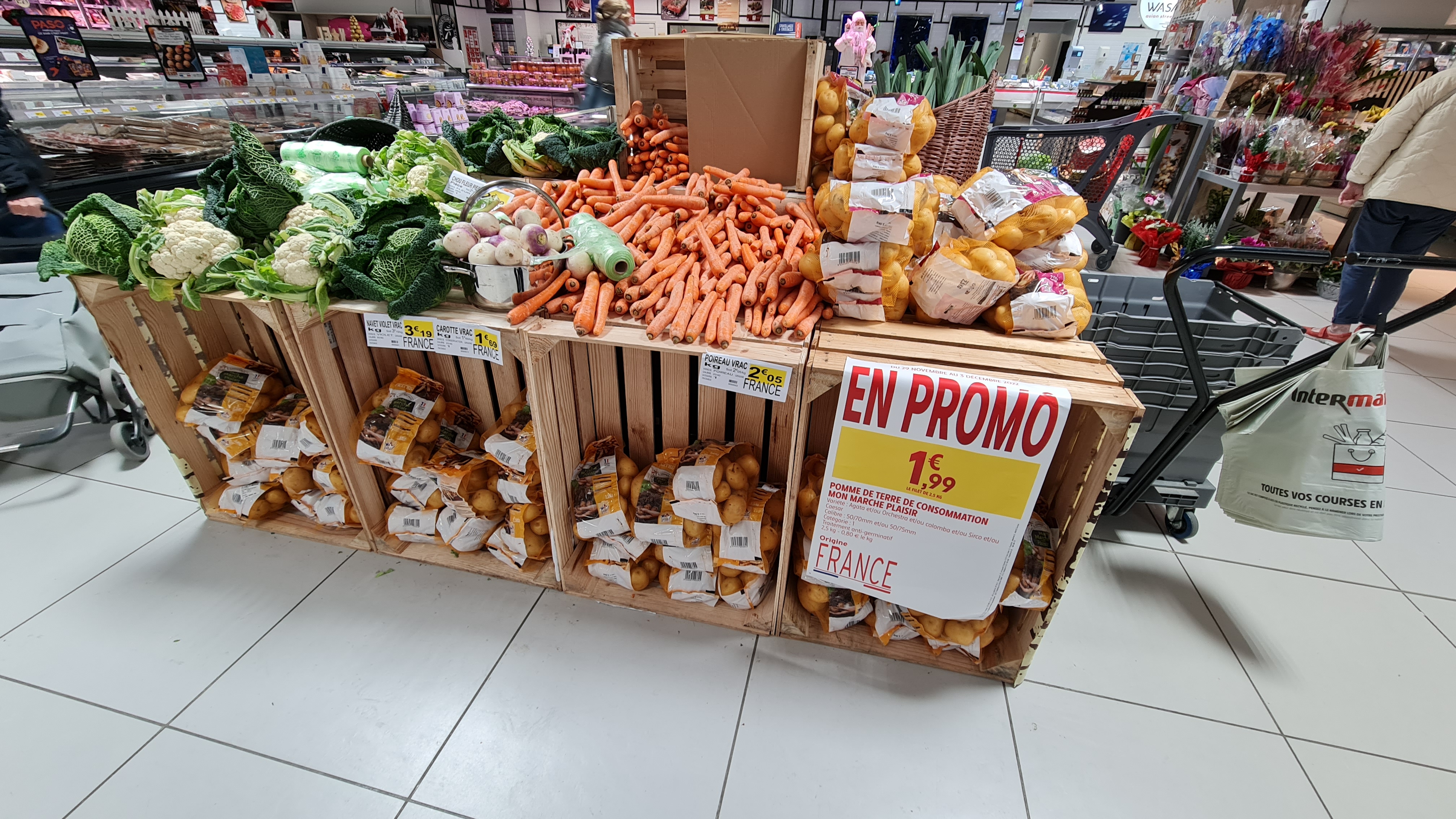 aujourd'hui, je suis venue dans mon magasin de proximité, a moins d'un kilomètre, et je suis sortie sans rien acheter pas de fruit abordable, pas un seul prix au dessous de 4,00 le kg... je me suis faite emmener plus loin au lidl de Villenave d'Ornon...à quoi sert la publicité mensongère qui passe en boucle a la télé ?au bout d'une immense cité de logements sociaux, ce magasin n'est pas adapté à nos revenus, et les personnes âgées ne sont pas dans la possibilité d'aller ailleurs.... Intermarché le sait bien....il faut intervenir.....
