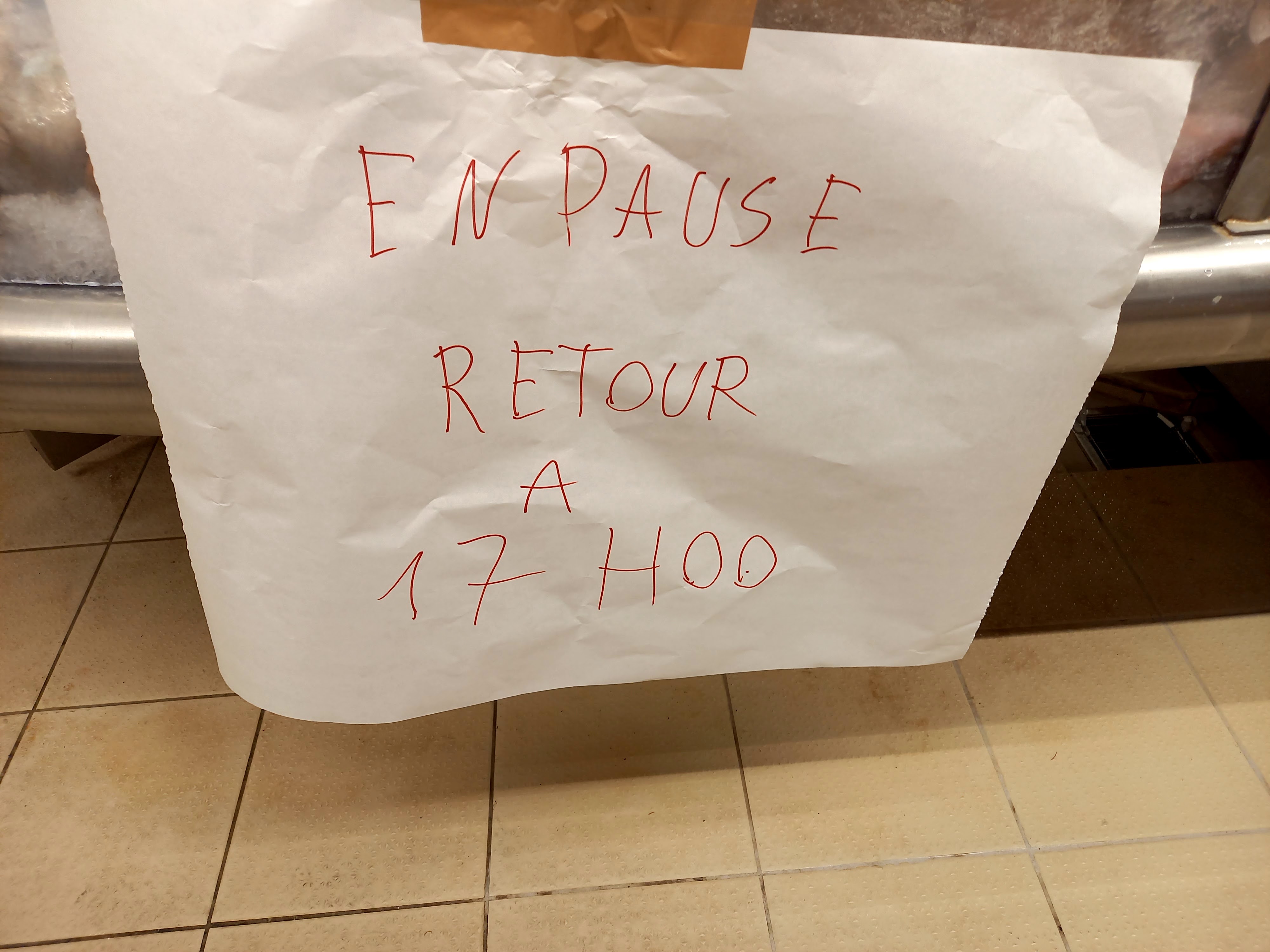 Beau magasin équipe sympa mais en 22ans de boucherie je n’ai encore jamais vu ça Une pancarte votre boucher reviens à 15h55 Alors que l’employé souhaite faire sa pause me paraît légitime mais dans ce cas là on demande un collègue d’un autre rayon d’être au service surtout un samedi après midi cela reste inadmissible