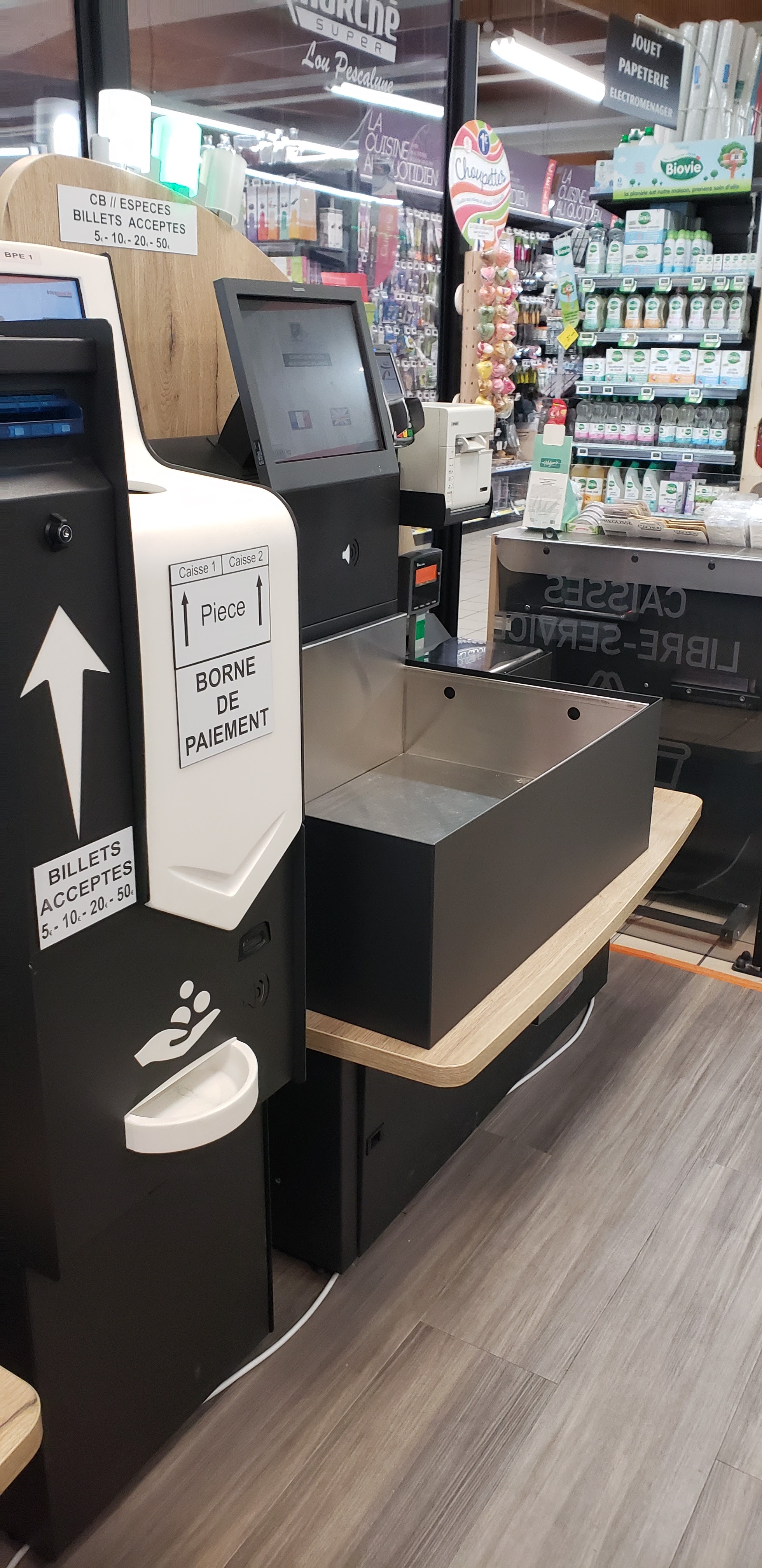 Gros problème les caisses automatiques sont casi tjrs fermés… du coup on perd un temps fou au caisses classiques de plus pas de wc !!! Dommage car sinon magasin refait récemment et personnel sympa