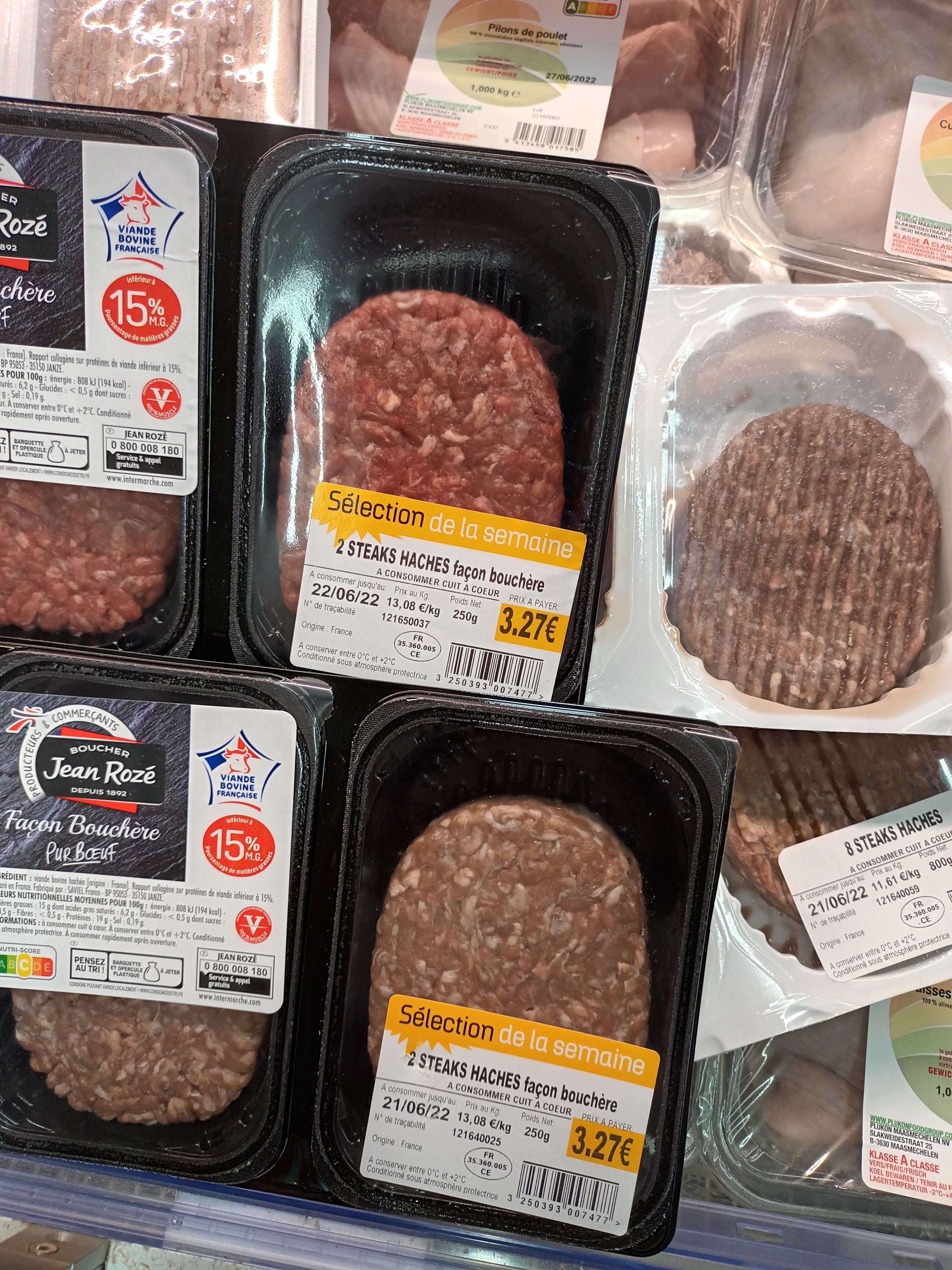Intermarché, j y vais régulièrement.. Ils ont une bonne qualité prix sur certain produit, type : yaourt, conserve, et d autres En dehors de ça la viande dans les bacs devant la boucherie est constamment noir/marron, signalé mainte et mainte fois aux caissières, accueil... Rien n'a jamais changé. J y ai travaillé il y a qql année, mais il n empêche que vue le prix il est abérent de vendre ca.. Dommage