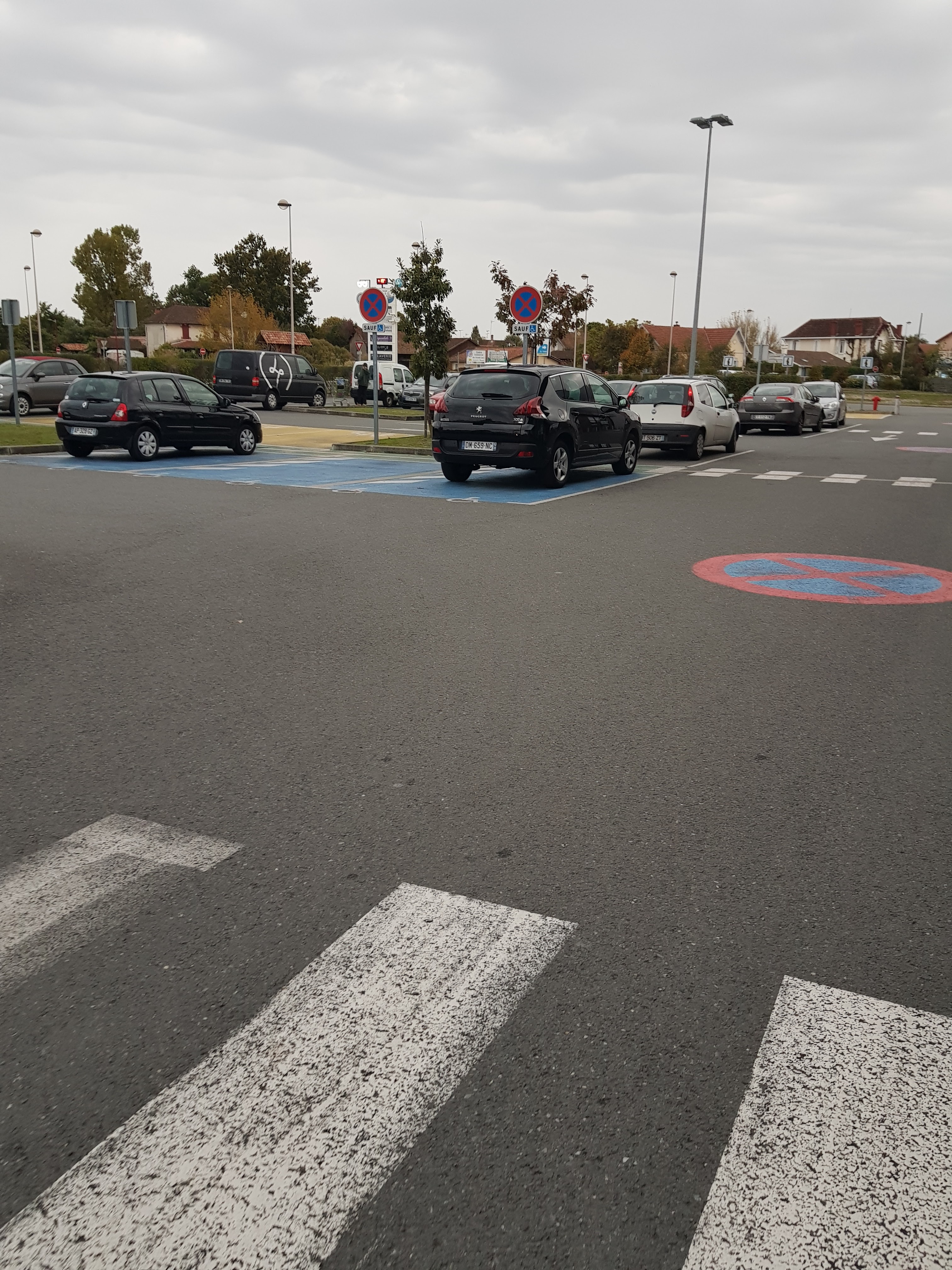 Places de parking famille, spacieuses très pratiques quand les autres utilisateurs ne s'y garent pas ! Rappel fait à une femme sans enfant en bas âge ni enceinte. Supermarché à taille humaine, avec du choix et caissier sympathique.
