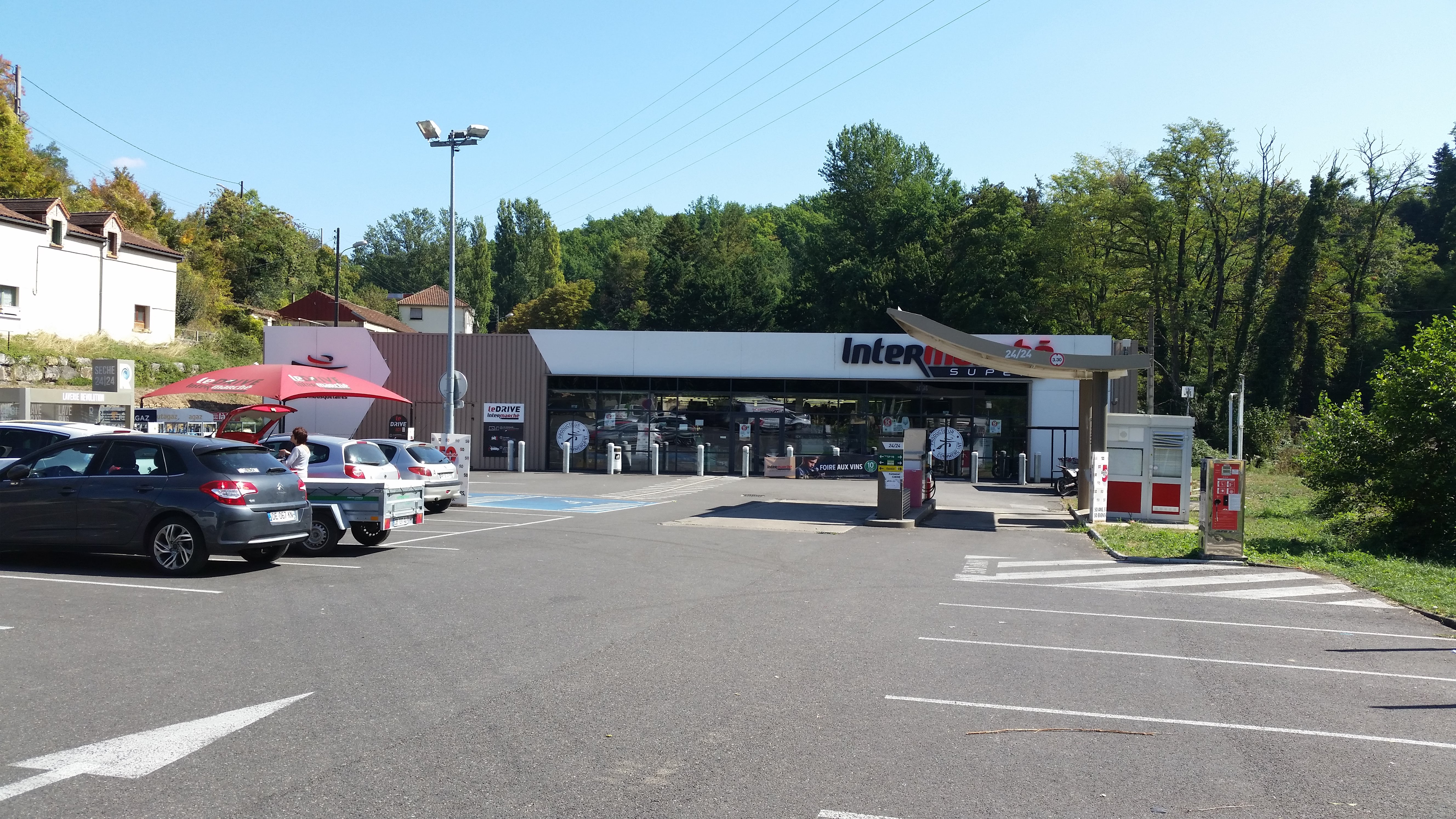 Beau petit Intermarché avec drive et station service souvent à prix très intéressant
