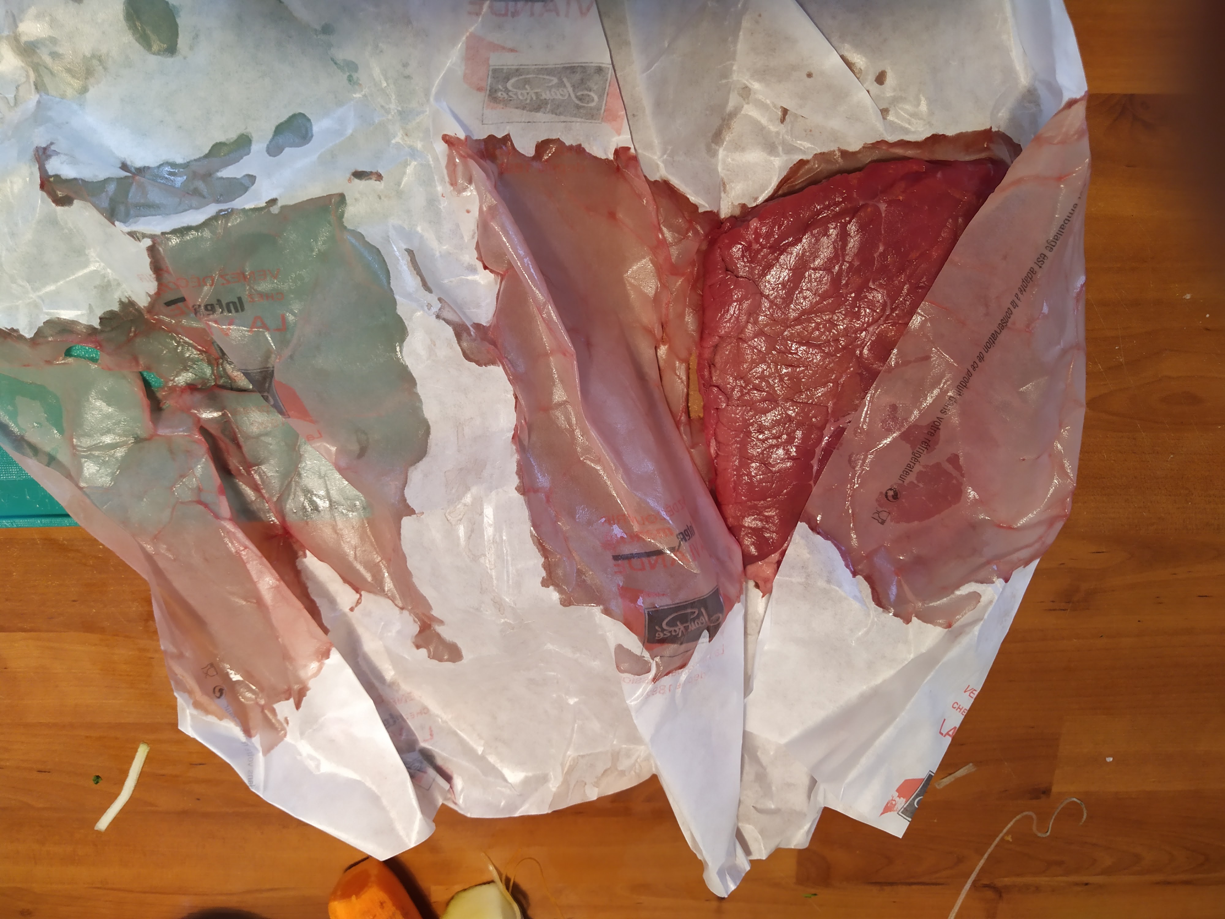Client de fidèle de Intermarché Rouffach, je déplore toutefois la piètre qualité du papier d'emballage de la boucherie. A peine arrivé à la maison, le papier est gorgé de sang et le papier se déchiquette par petits morceaux et resté collé la viande. Voir photo. C'est pénible et peu ragoûtant.