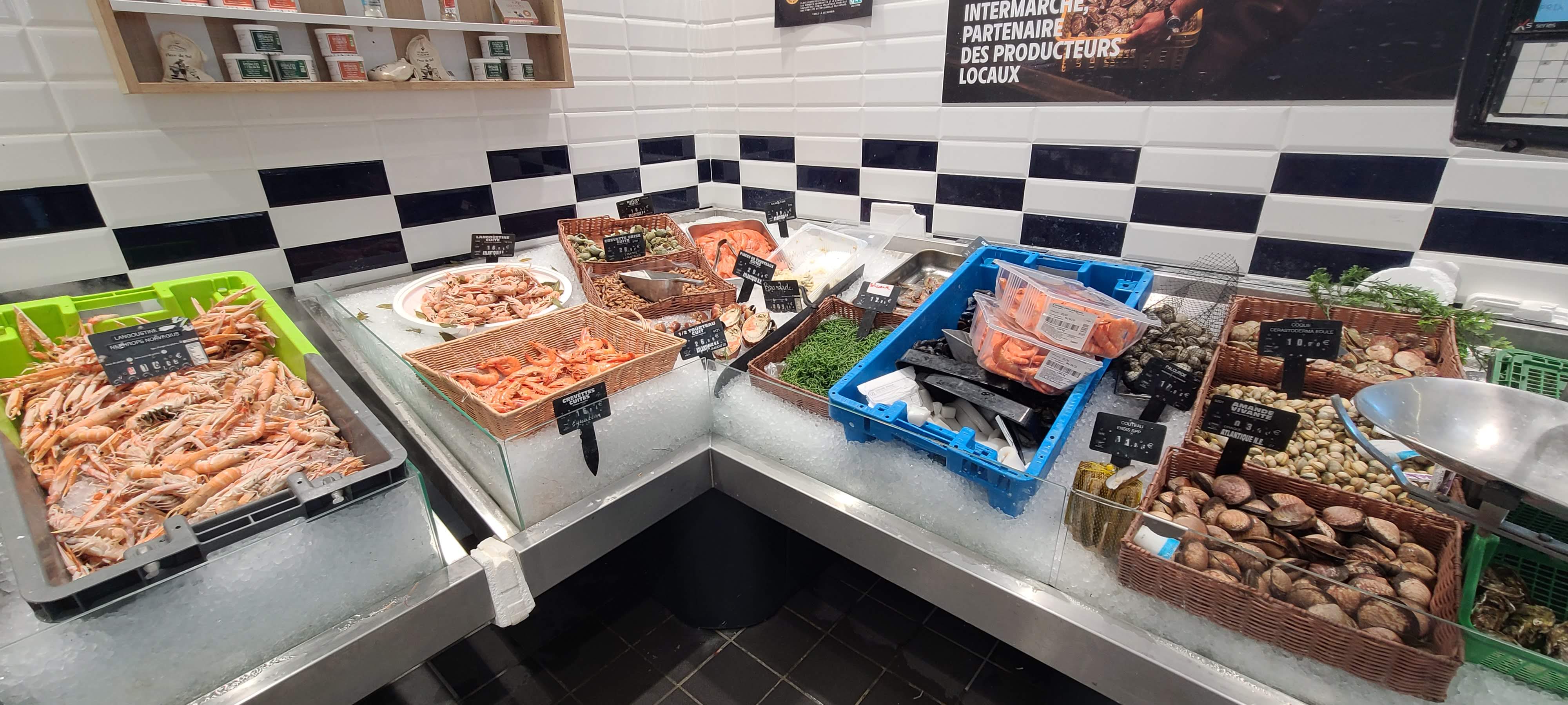 Habitué de l’île et résident, une poissonnerie de plus en plus déplorable. Pour exemple, des coquilles saint Jacques d’une provenance inconnue, au goût douteux et amer colorent la poche et le jus de cuisson de couleur orange, également des pinces de crabes où la chaire de couleur grisâtre etc … le responsable du rayon peut faire du zèle… à l’ouverture de l hypermarché , c’était vraiment différent, produits très frais. Vraiment dommage pour une poissonnerie au milieu d’une île et proche d’une criée…