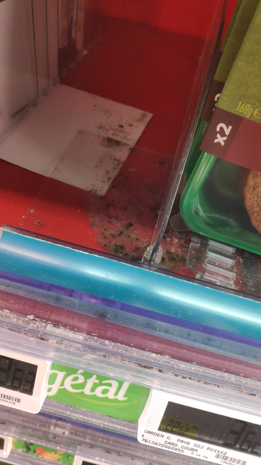 Les rayons sont crades, mais à un niveau insoupçonné... cliquez sur la photo pour l'agrandir EDIT : une semaine après le post de mon avis (premier avis posté fin septembre, édit le 7 octobre), et après avoir interpellé le gérant du magasin, voir photo n°2, RIEN N'A ÉTÉ NETTOYÉ ! C'est scandaleux !