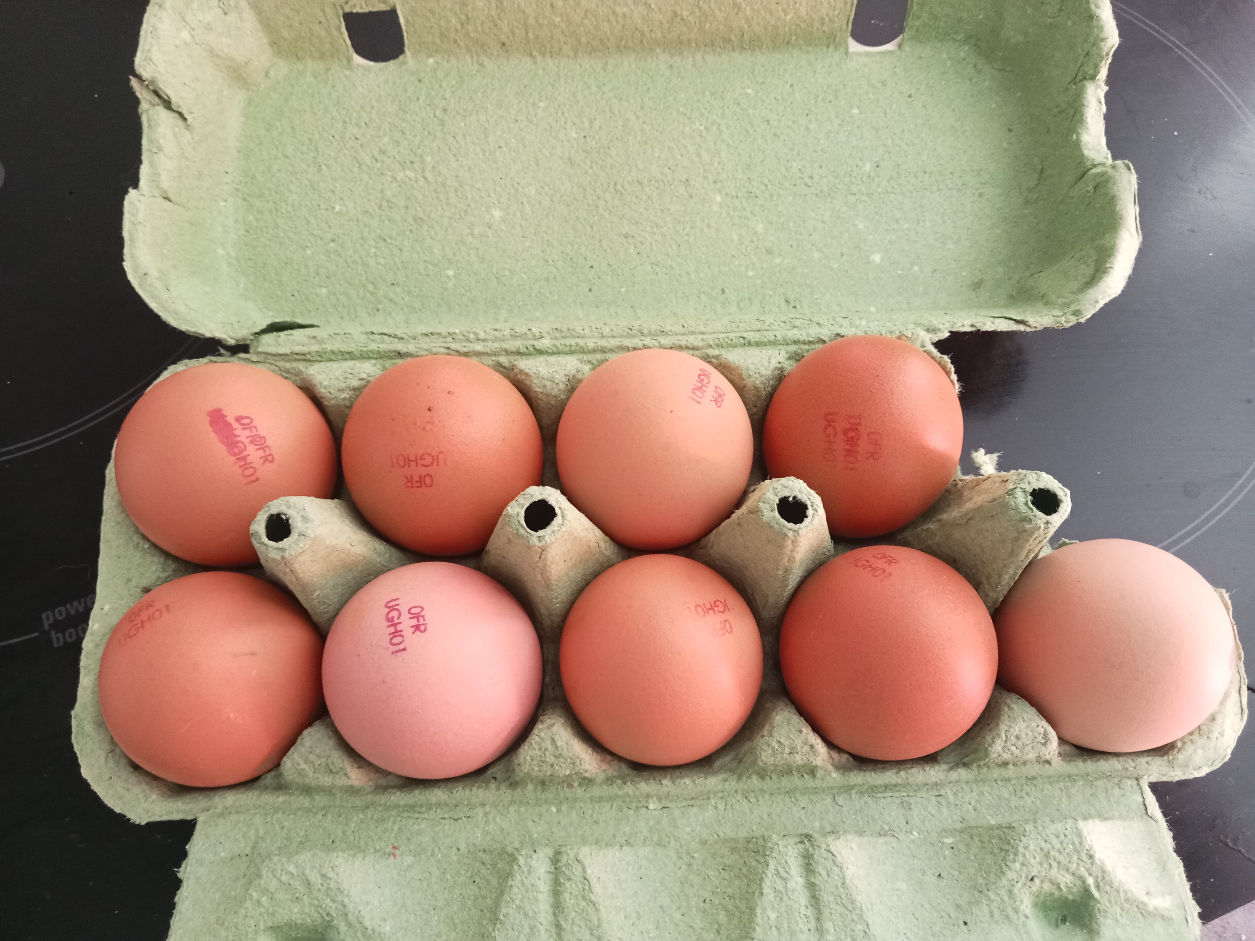 Hallucinant ! J étais pressé donc J ai pas fait attention mais en arrivant chez moi j ai halluciné sûrement un oeuf cassé qui avait coulé dans la boîte et du coup qui a été soigneusement découpé et donc un œuf bio en moins! A ce stade c'est vraiment du vol !