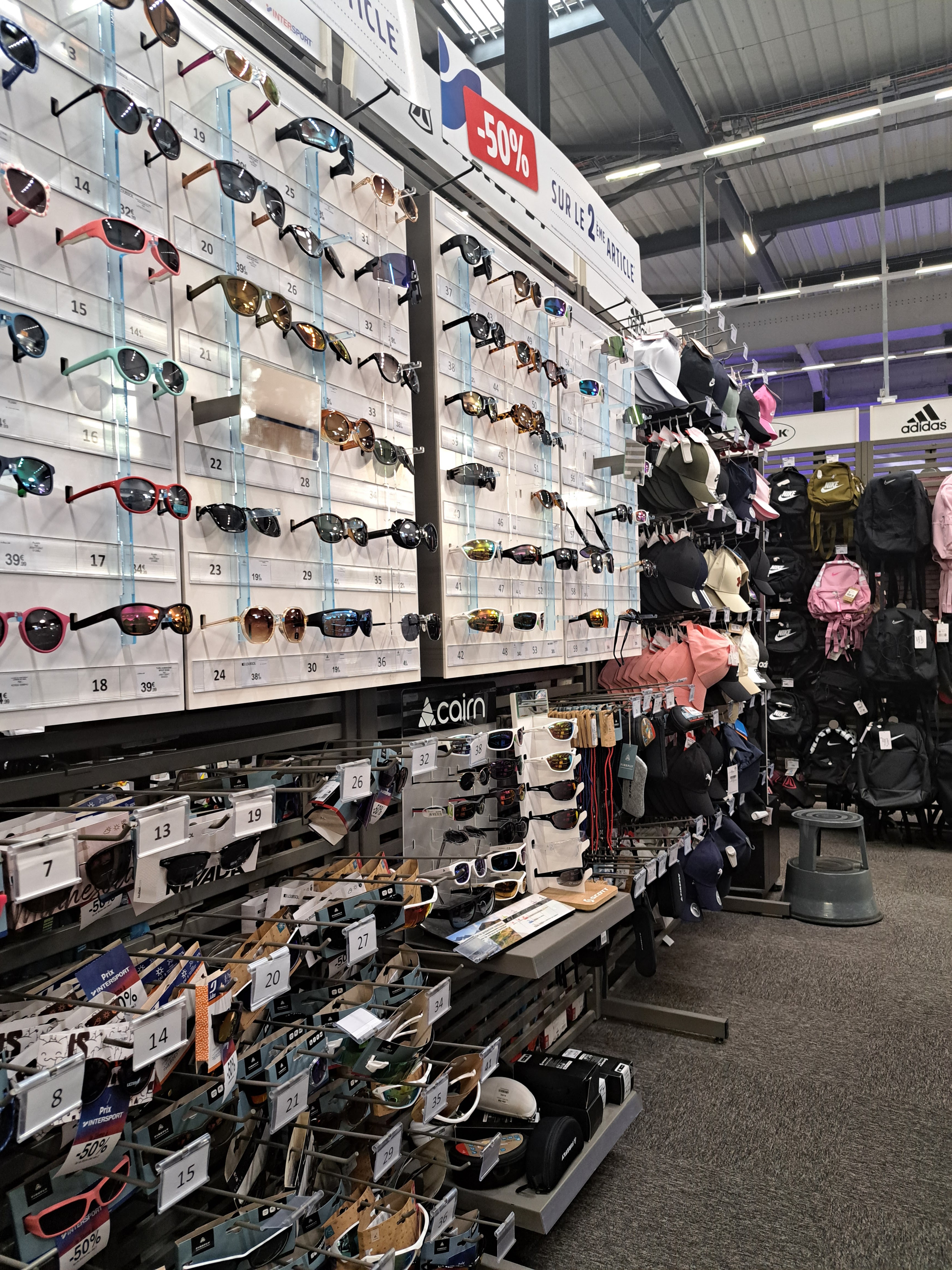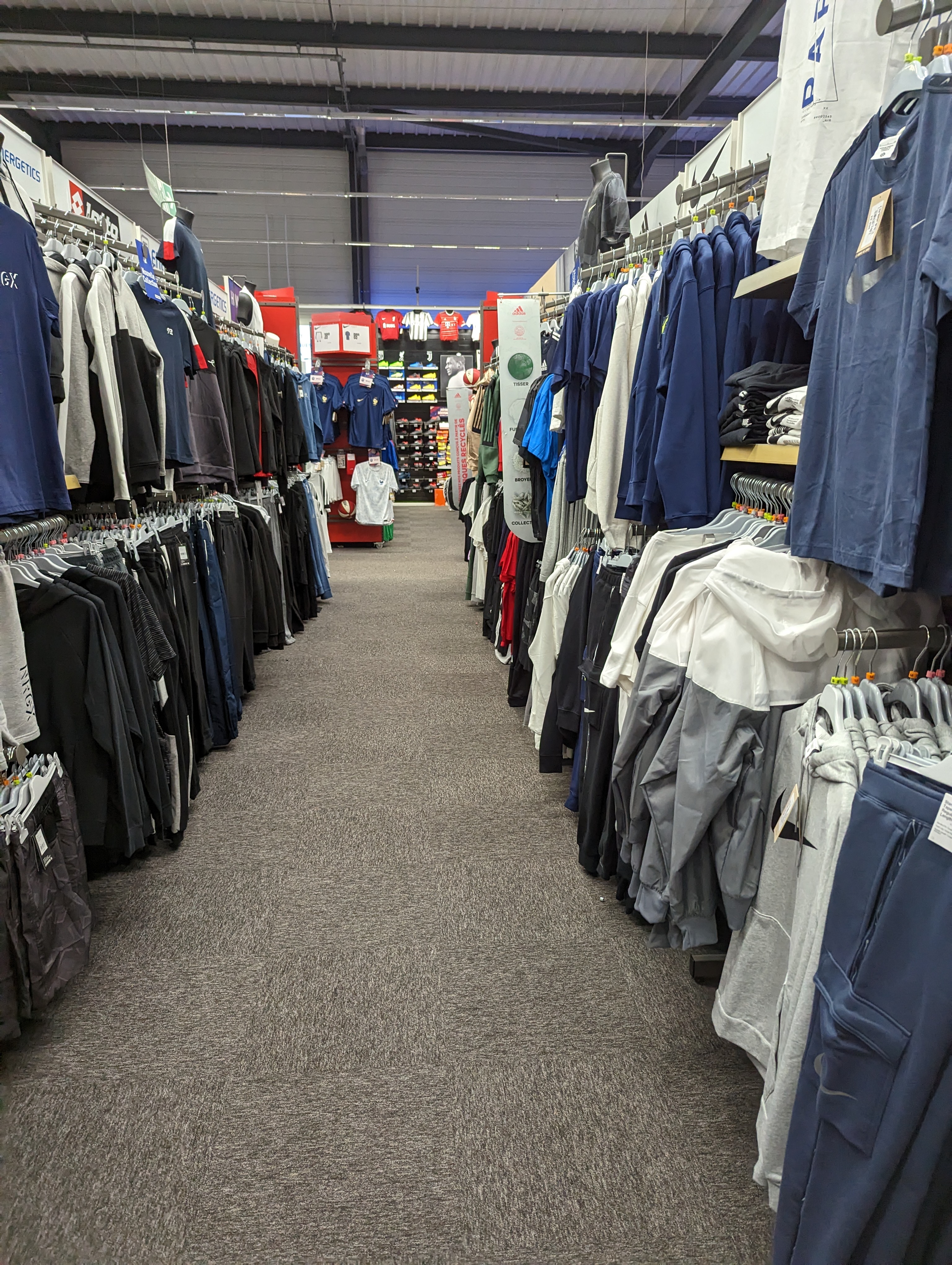 Grand magasin. Propre. Beaucoup d'articles de sport et de mode.