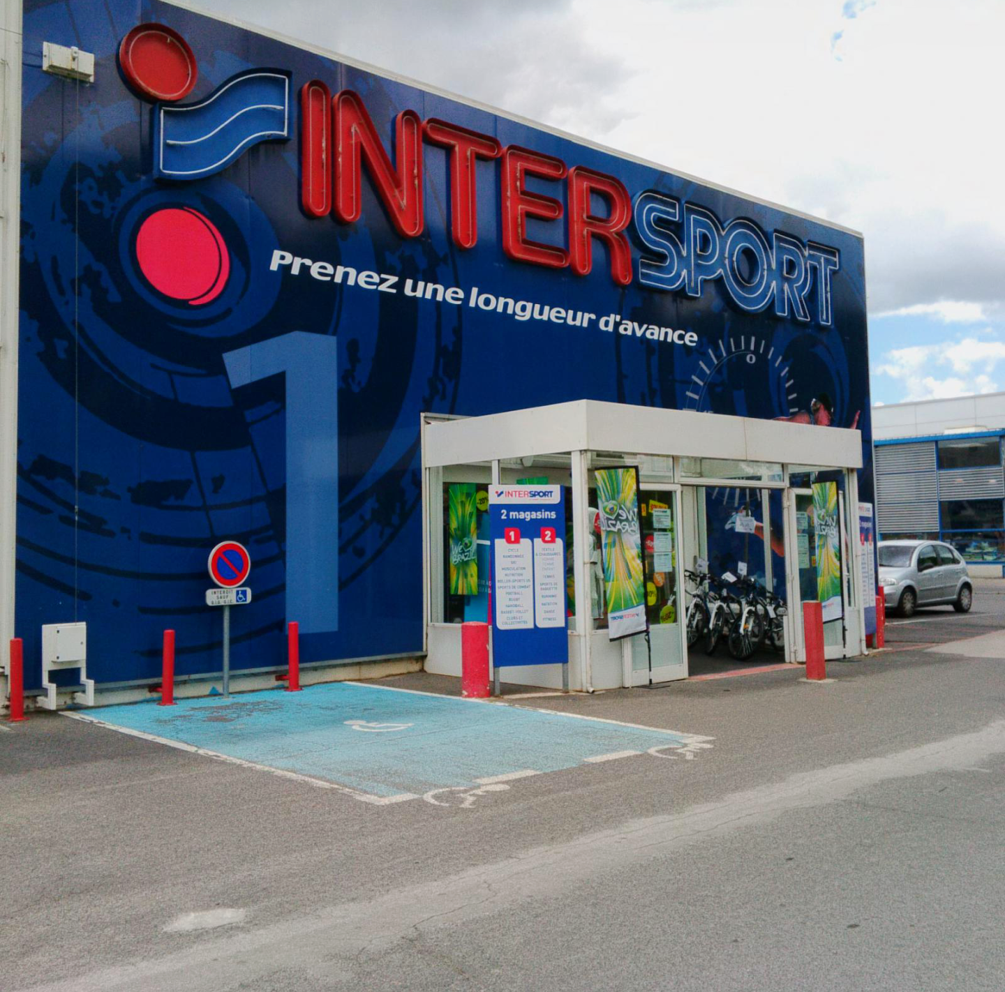 Grand magasin de sport. Grand choix de produits de sport de marque Intersport mais aussi d'autres marques. Mixage entre entre matériel et vêtements de sports et vêtements de mode (Levi's ,....) Personnel agréable. Equipe cycle compétente et sympathique. Magasin propre et bien achalandé. Piste cyclable à proximité du magasin.