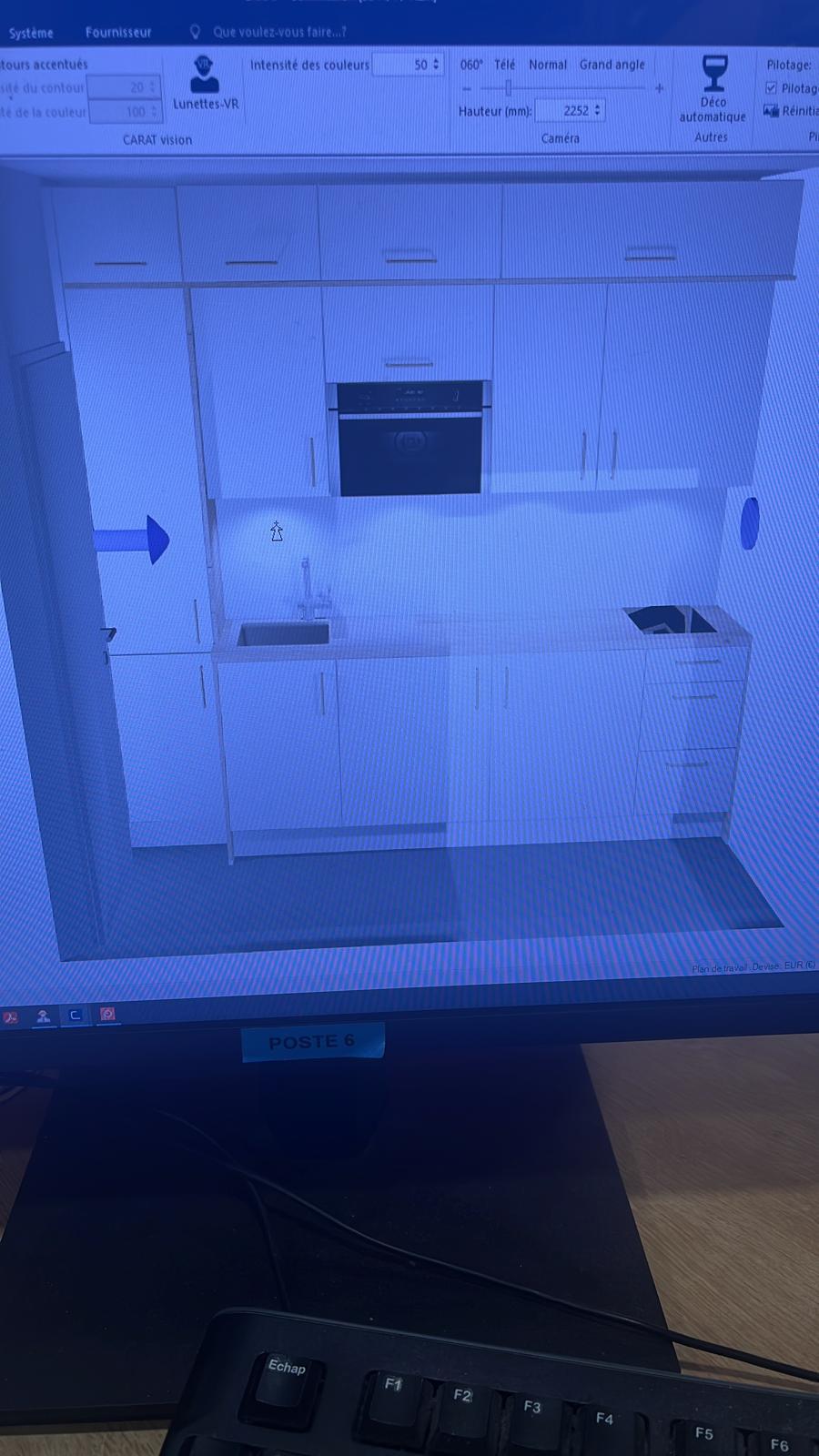 Accueil chaleureux. Mise en forme d’un projet de cuisine en 3D avec tous les éléments disponibles pour effectuer les bons choix de coloris et de matériaux.