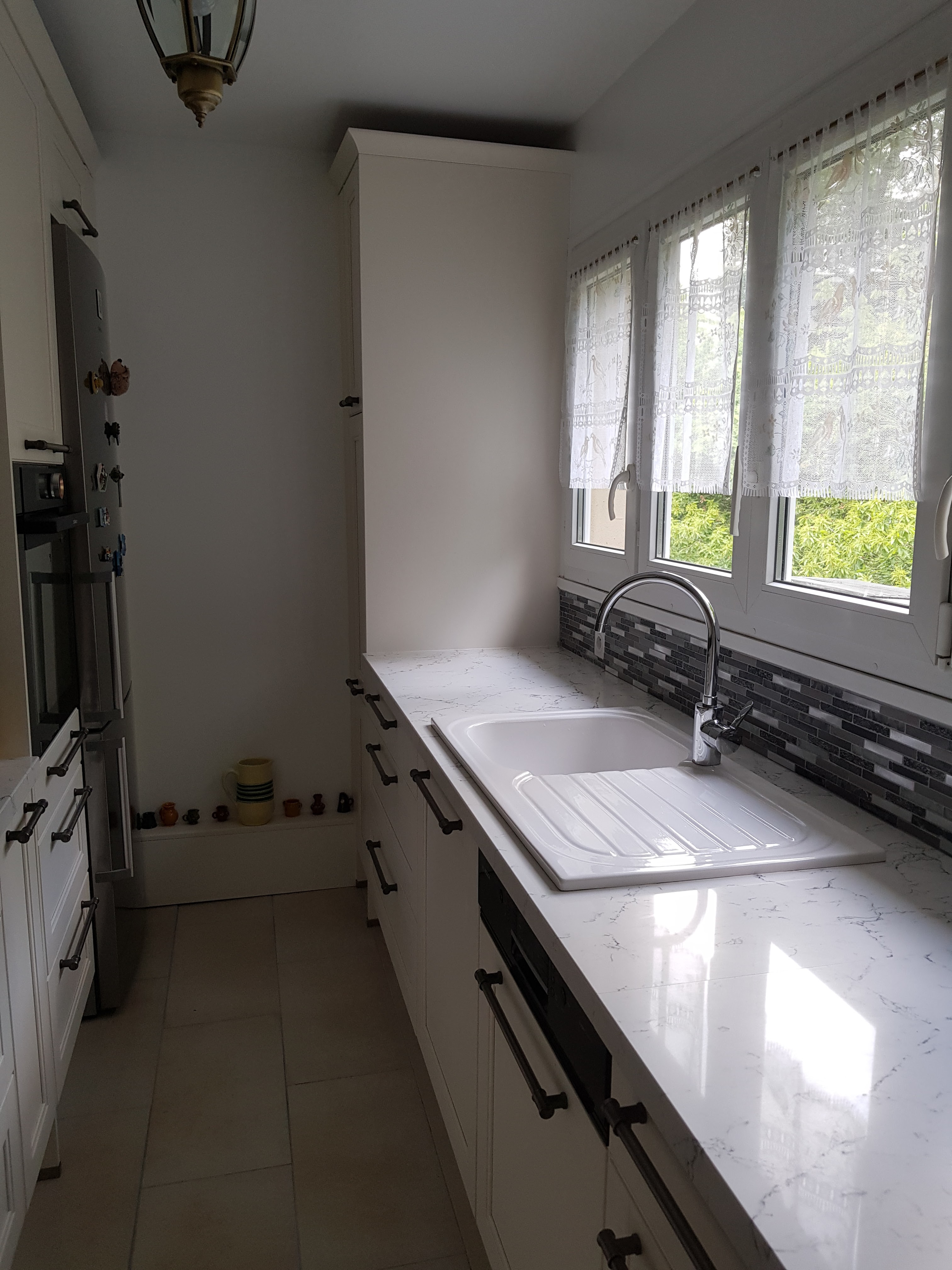 Notre cuisine est posée et opérationnelle, c'est un vrai bonheur d'y être. Nous avons beaucoup plus de rangement et maintenant nous pouvons cuisiner à deux ! Nous tenions à remercier Séverine Martel pour le temps qu'elle nous avait consacré, pour ses conseils et d'avoir répondu à toutes nos attentes même celles auxquelles on ne croyait pas ! Nous tenions également à porter à votre connaissance que nous étions très satisfaits du livreur ainsi que du poseur, tous deux sympathiques et professionnels. Merci à eux.