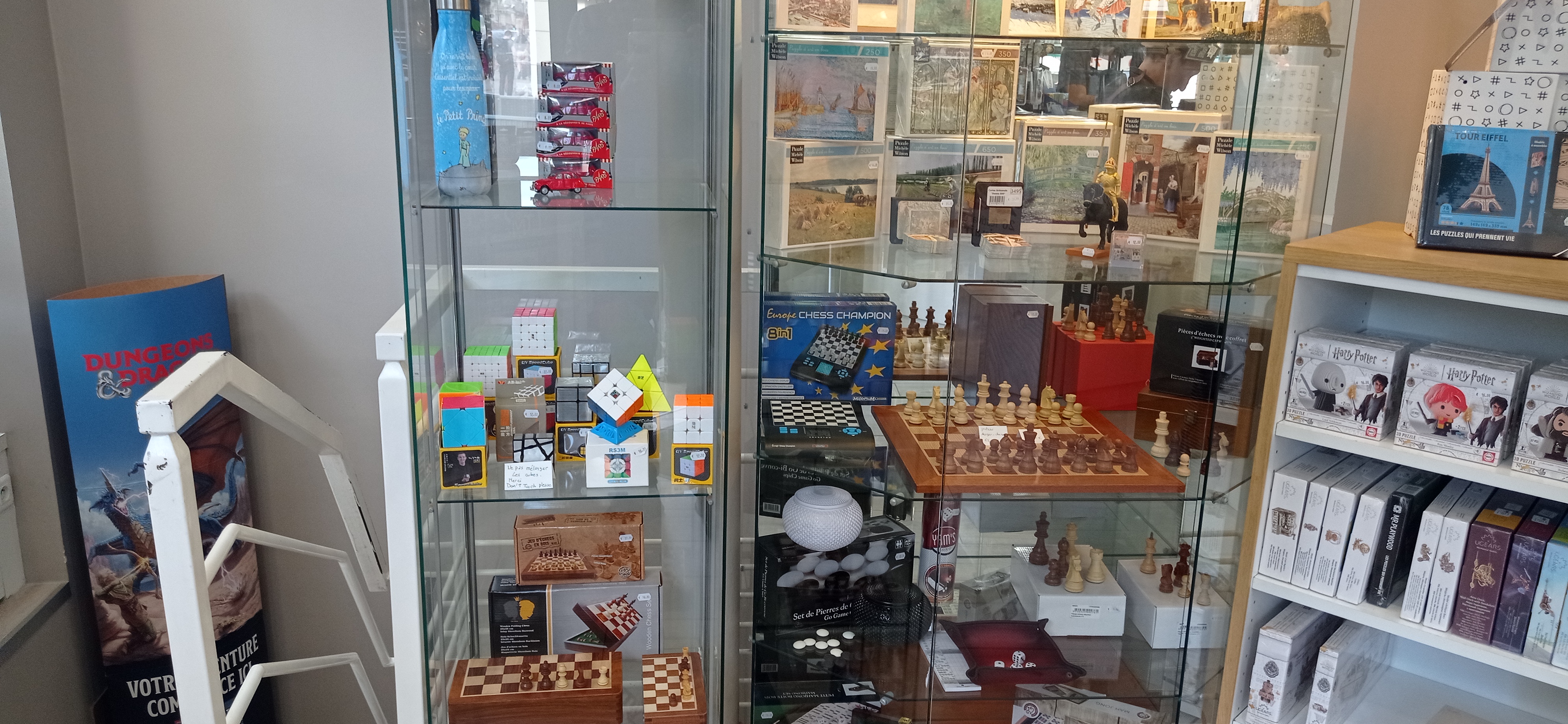 Super collection de jeux de société, il y a même quelques puzzles. Que du neuf, il ne faut pas hésiter à poser des questions, les vendeurs sont très agréables et vont orienter correctement si l'on ne sait pas ce qu'on est venu acheter 😉