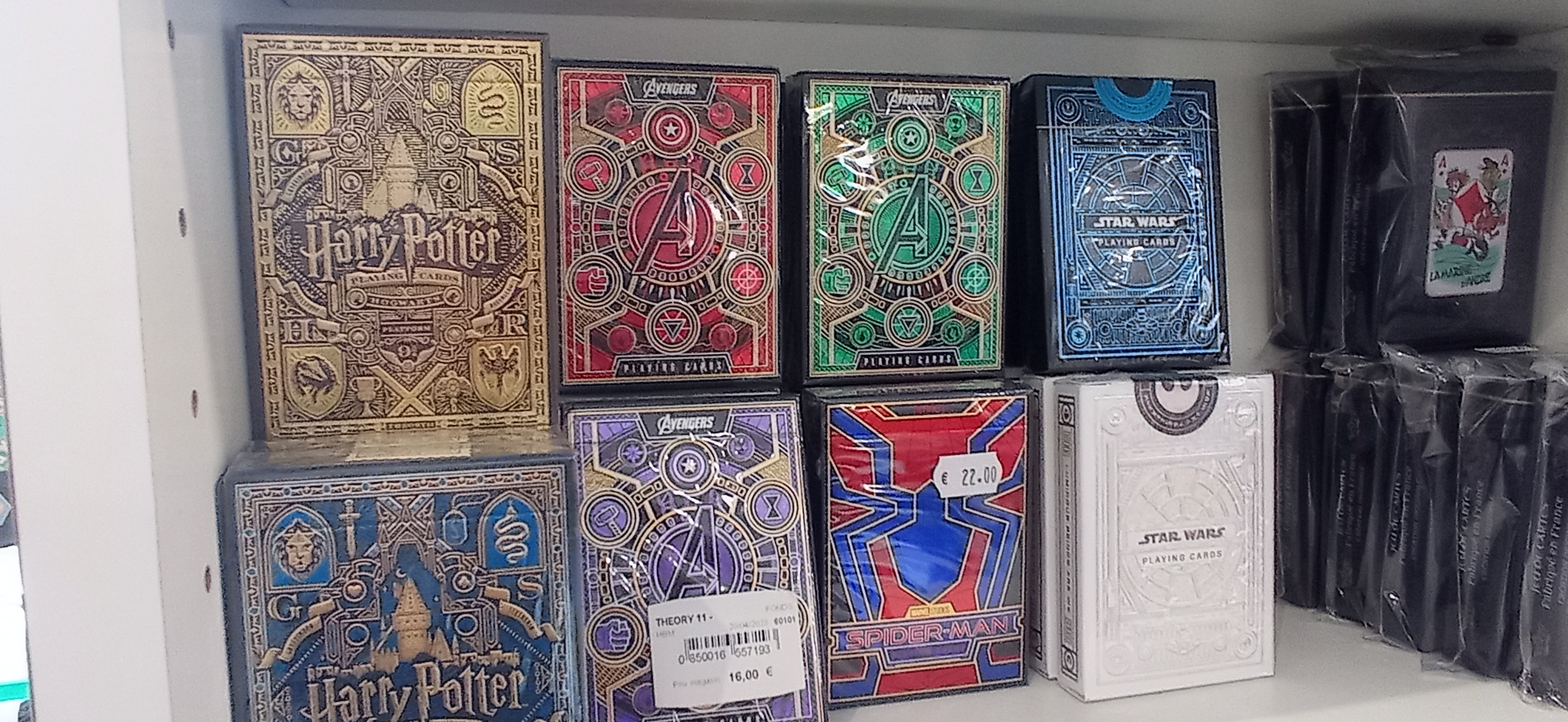 Belle sélection de jeux de société. je venais pour acheter de simples cartes à jouer et je suis repartit avec plein d’idée dans la tête et une nouvelle passion pour les jeux de cartes spéciaux et décorés