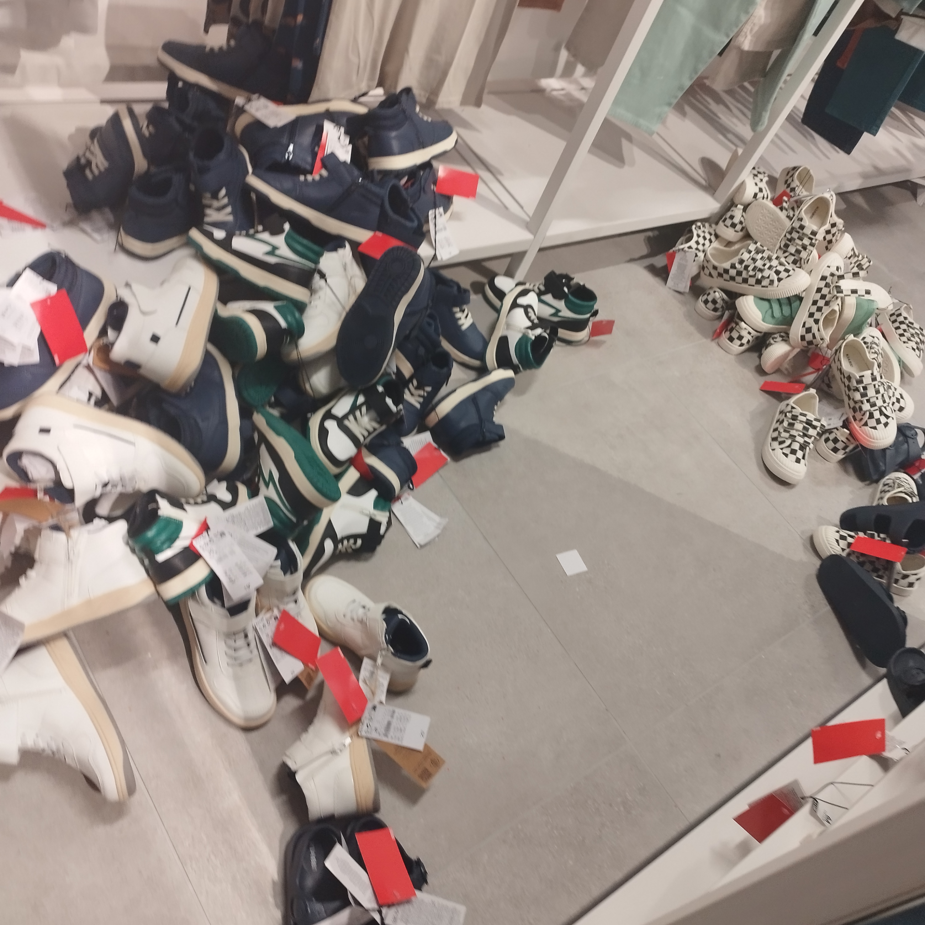 Le magasin fait fouilli, le sol est sale, il y a plein d'étiquettes ou de vêtements tombés des cintres qui traînent par terre. L'accueil aux cabines d'essayage est complètement à revoir, rien non plus pour poser ses vêtements dans les cabines. Seul le personnel aux caisses est aimable. Le magasin Kiabi d'Aubevoye est très largement mieux.