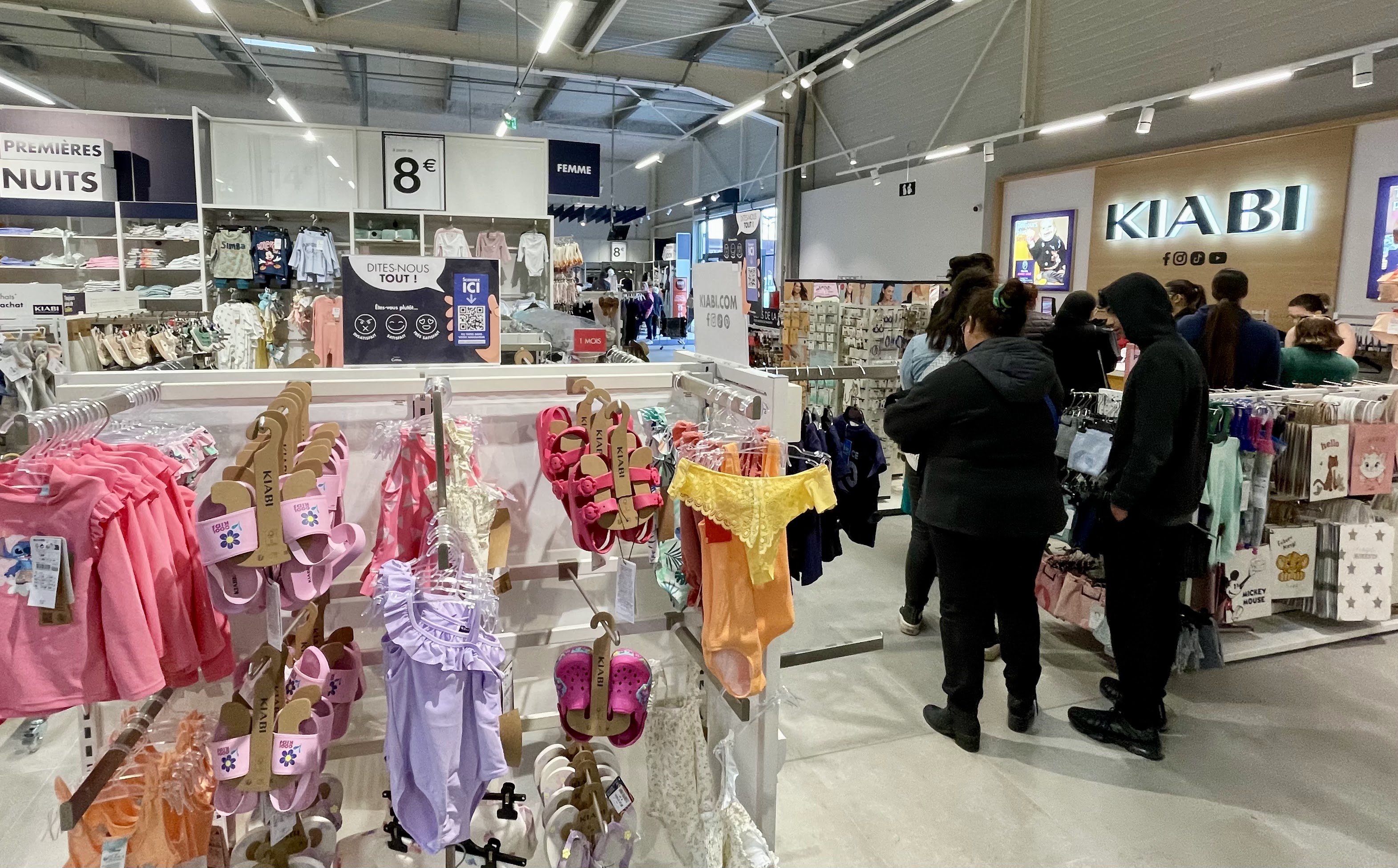 Habituée de ce magasin depuis des années mais la je suis agacée.. Les allées sont trop étroites pour les pousettes c'est désagréable de circuler dans ces conditions. Pensez au pousettes et aussi aux fauteuils roulants par la même occasion 20 minutes d'attente en caisse alors qu'il y avait seulement 3 personnes devant moi ça fait long, magasin sans dessus dessous dès 11h le matin.. Je songe à changer de Kiabi