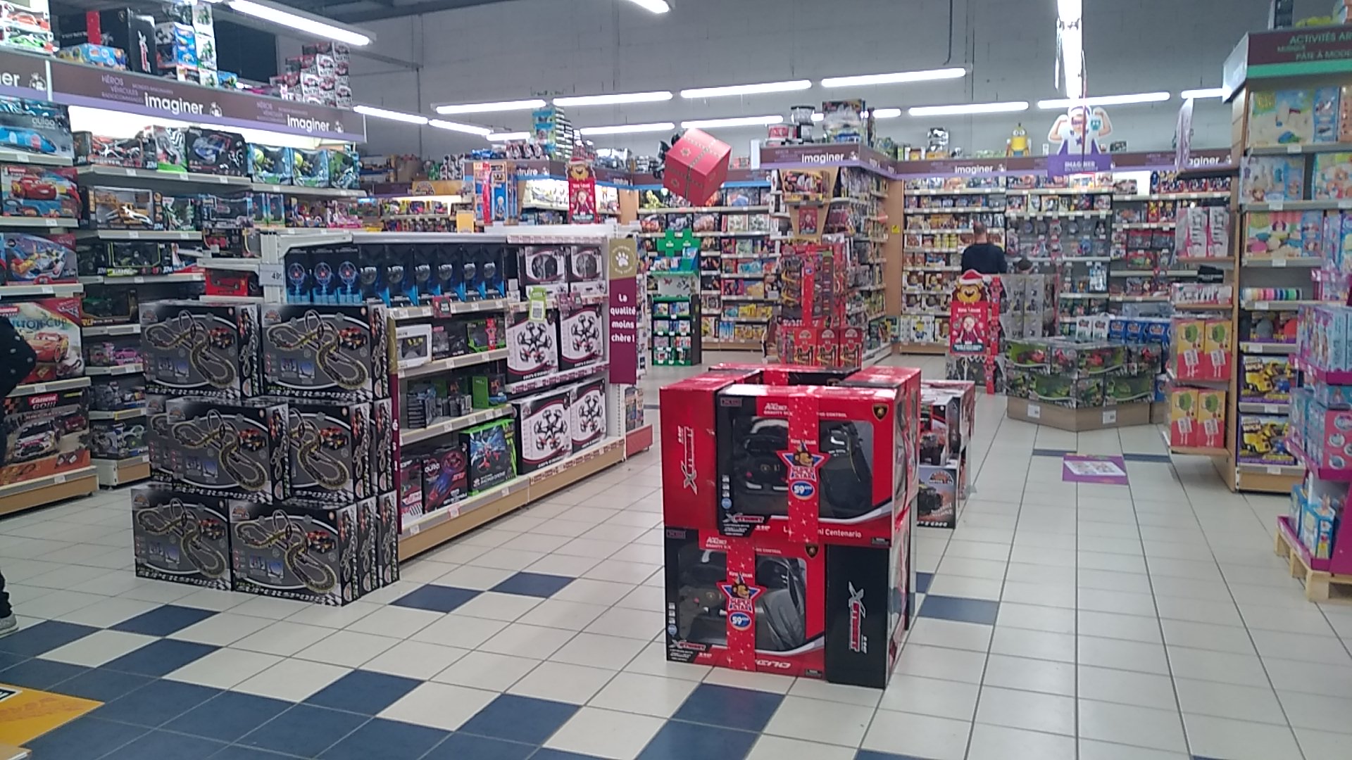 Grand magasin de jouet un peu trop grand. Ai trouvé ce que je voulais.