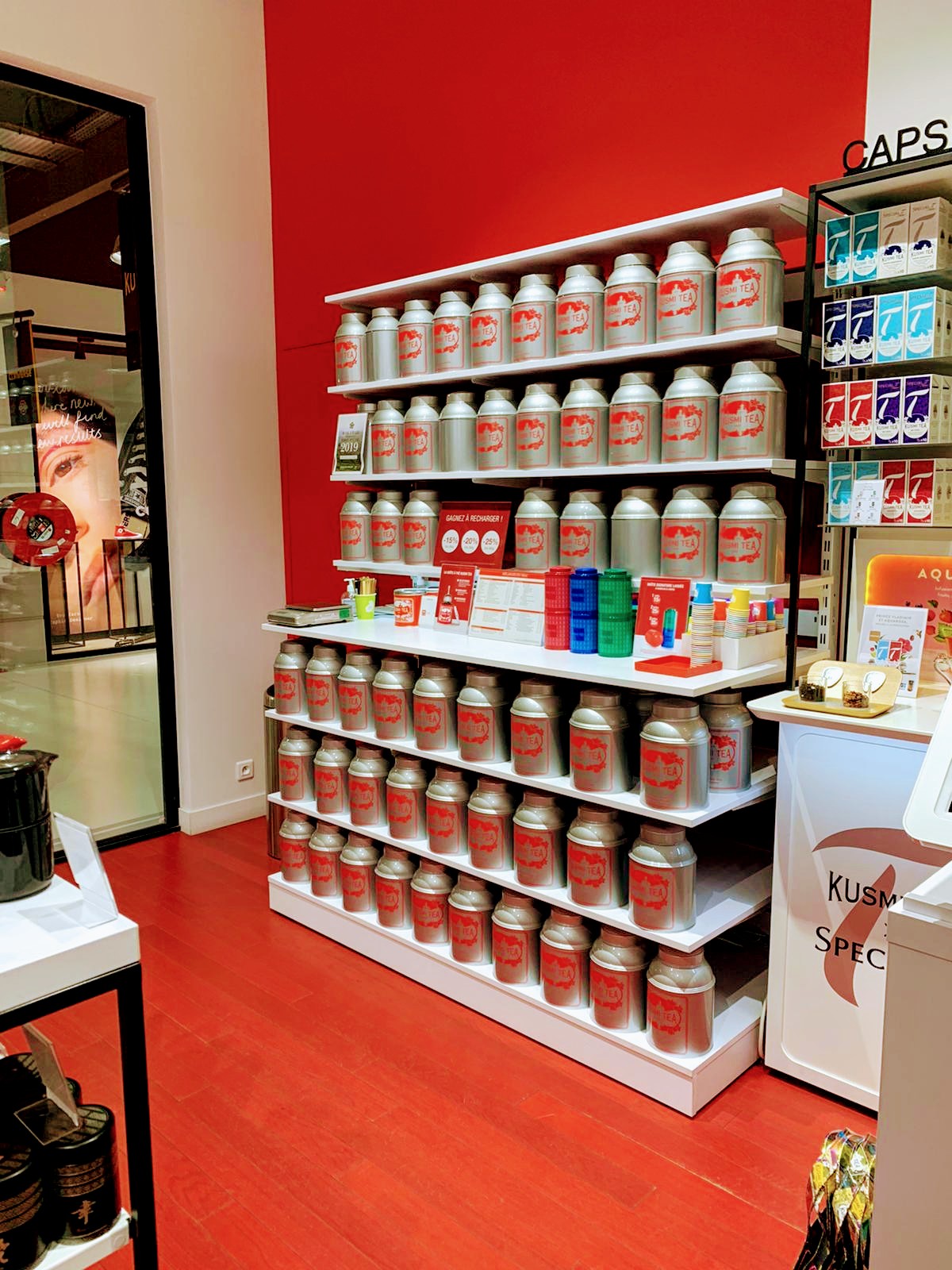 Implantée dans le centre commercial Marques Avenue A6, l'enseigne Kusmi Tea est facile d'accès pour tous. Nous connaissions les produits de Kusmi Tea lors de nos visites dans le centre commercial Muse. Donc, pour nous aucune surprise. Nous nous sommes tout de même laissés diriger pour la composition d'un lot cadeau à offrir le soir même. L'ensemble du magasin présente bien, les linéaires mettent bien en valeur les différents produits. Très grande satisfaction de nos hôtes qui eux sont de grands amateurs thés.