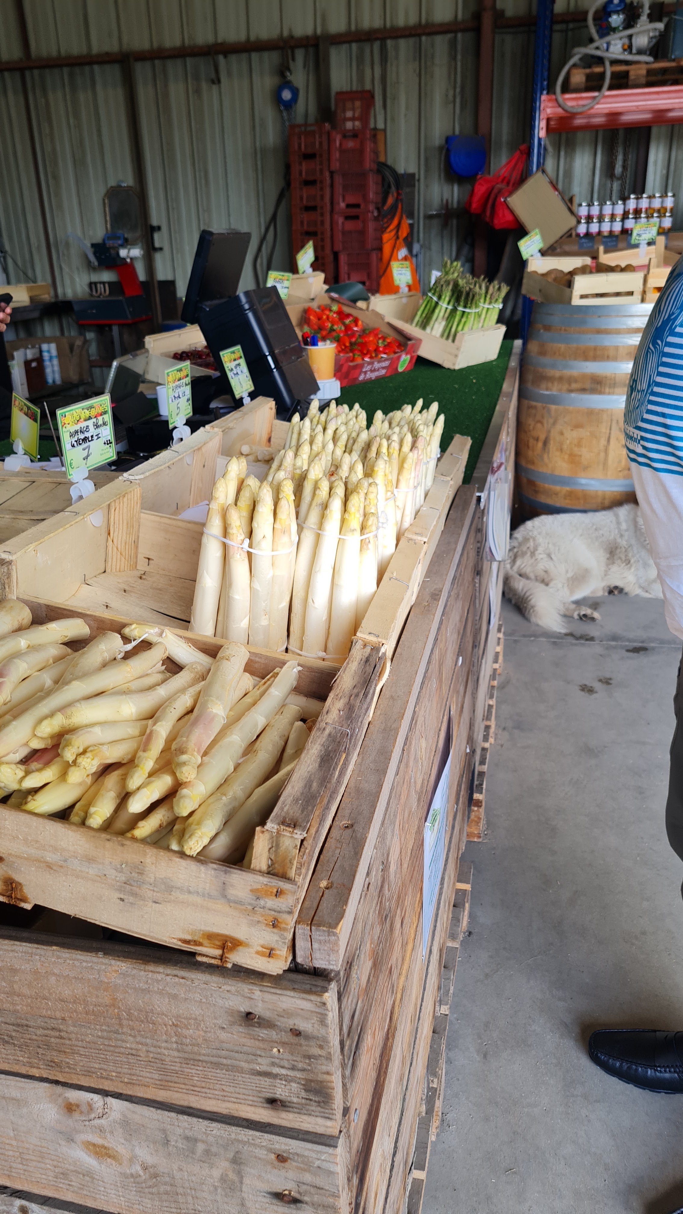 Decouvert un peu par hasard sur le net pour feter la fin de la sainson des asperges. Les produits sont de qualité autant les asperges blanches que vertes , ainsi que les fraises hyper parfumées. Tout est local et en vente directe donc c'est bien appréciable. L accueil est aussi appreciable ( par les chiens également)