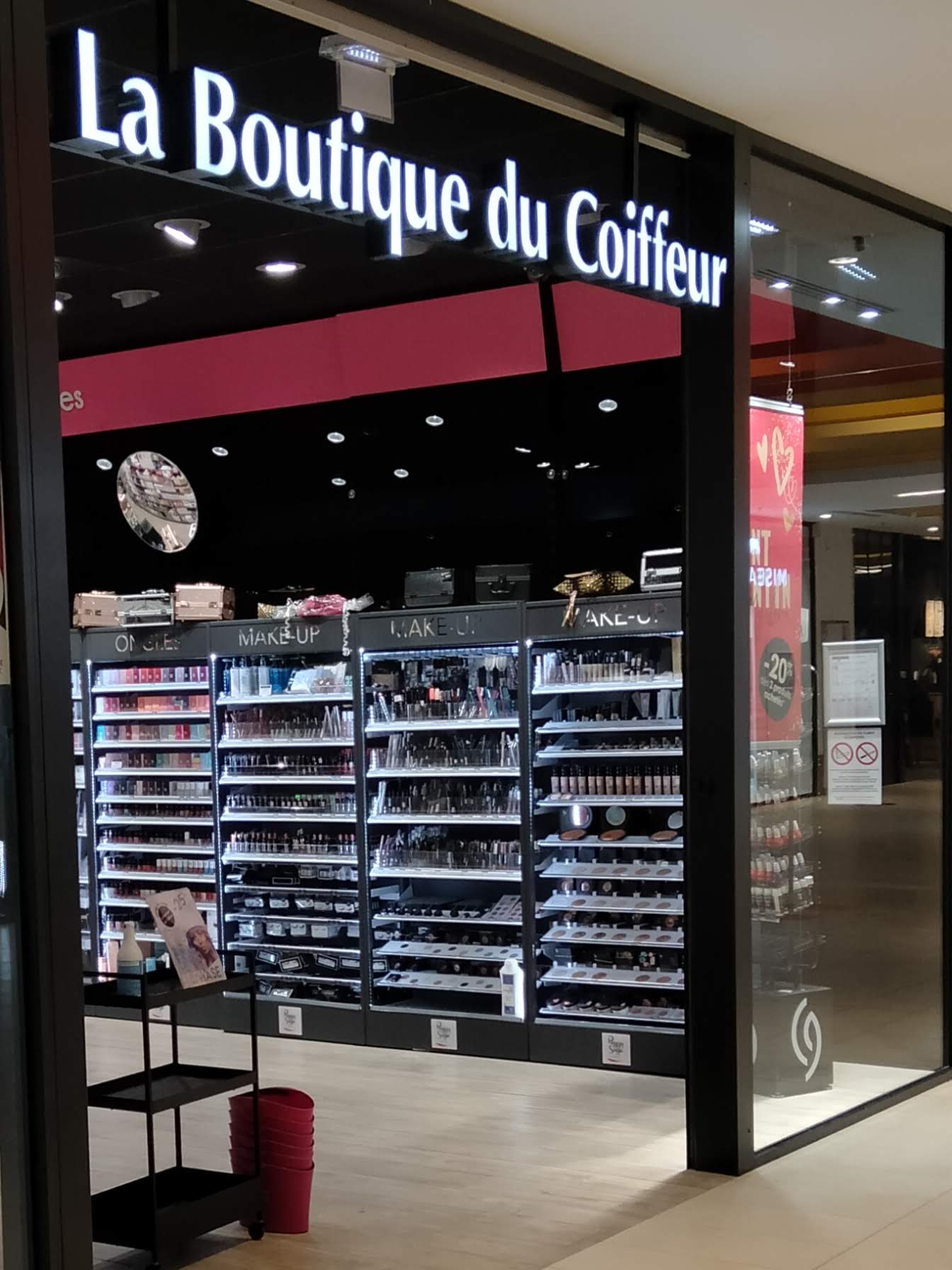 Magasin dédié à la beauté : aux soins des ongles 💅, aux soins des cheveux 🧒 coloration, 🧴accessoires.,...et, autres !!!! matériel de coiffure ✂️, sèche-cheveux.....etc..... pas mal 😊