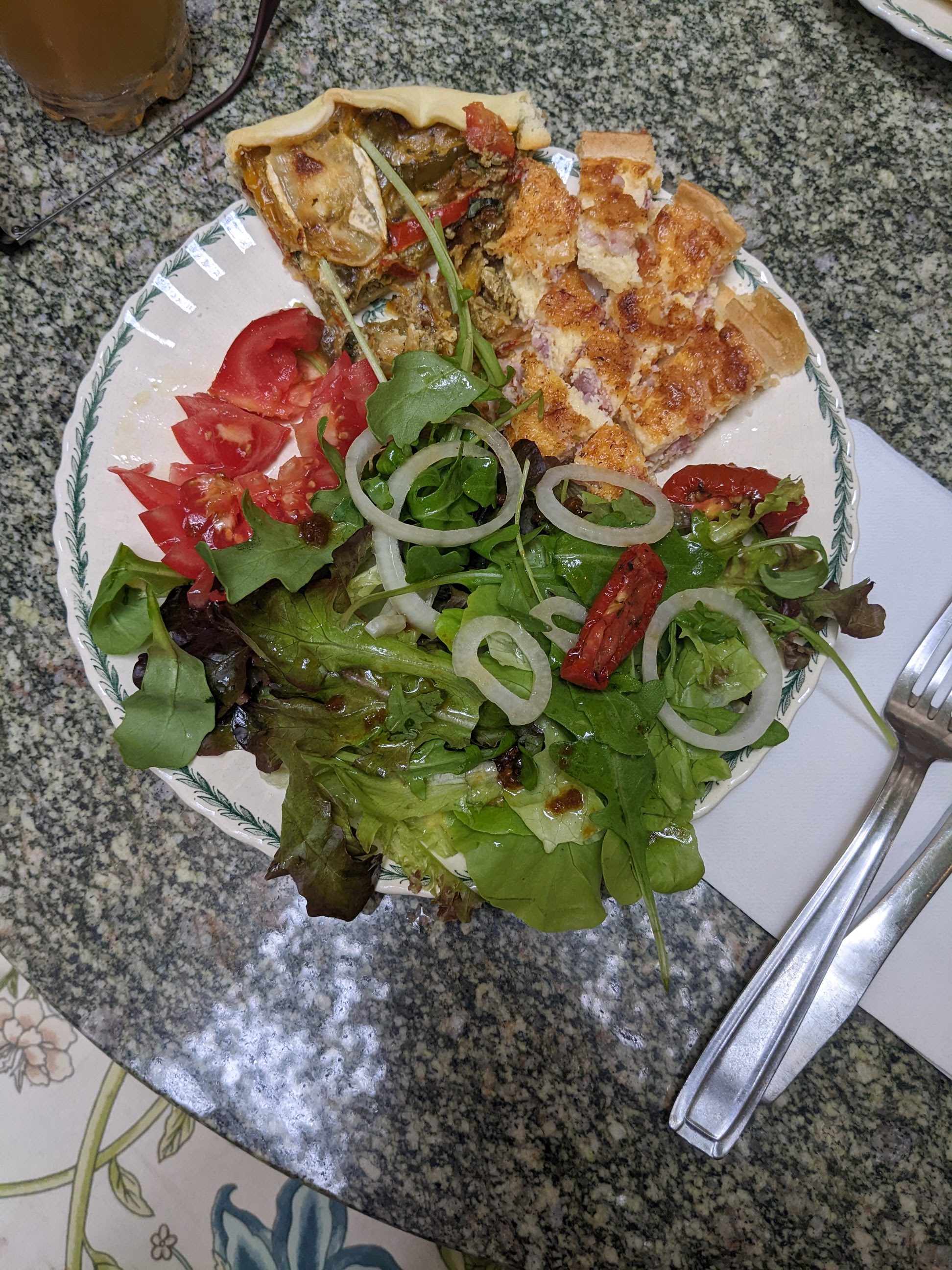 Ce midi pour la 3eme fois déjeuner dans un petit endroit calme et agréable. Petite salade et tarte plus thé bien sympathiques..