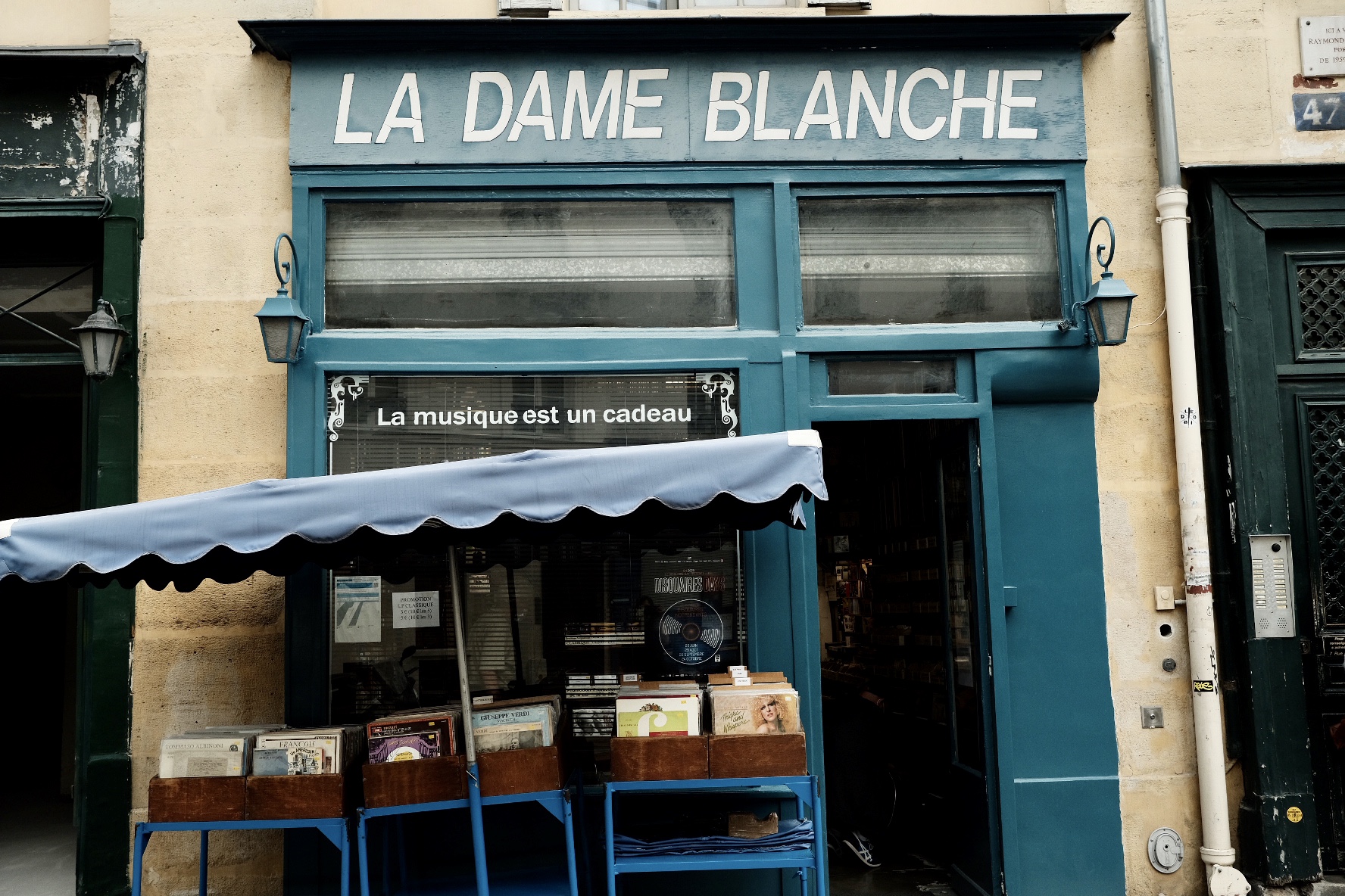Je voyage beaucoup pour le travail. Si j'ai du temps libre, je l'utiliserai pour visiter des magasins de vinyles vendant des vinyles rares. Je suis à Paris en ce moment et j’ai la chance d’avoir du temps libre. Hier, j'ai passé tout mon temps libre à Dame Blanche. Quelle belle boutique c'est. Le propriétaire et son fils sont tous deux très compétents et serviables. A enregistré de nombreux excellents LP à des prix raisonnables. Super journée de shopping LP. Je vous recommande vivement de visiter cette boutique. Le meilleur de Paris, c'est sûr