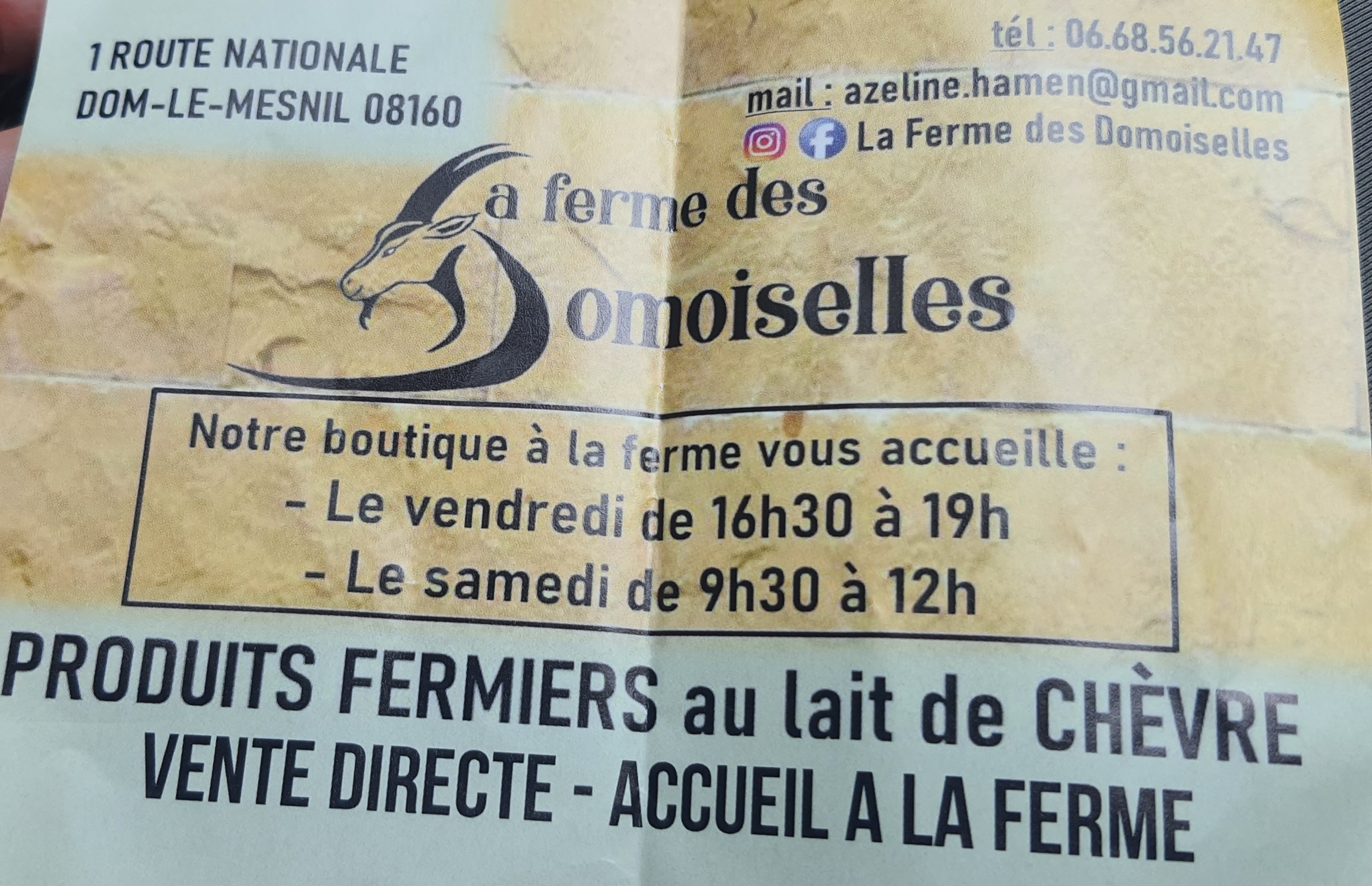 Pour une première aujourd'hui, j ai apprécié, l accueil, très sympa, explications des produits, bien sûr j en ai pris, yaourts, fromage etc, RÉSULTAT, J ADORE, J y retournerai🙋♀️🙏🌹👌😉 avec un Grand plaisir, 2 jeunes qu ils faut aider car ils font du beau travail, en tous cas moi, je les soutiens.🐐🐐