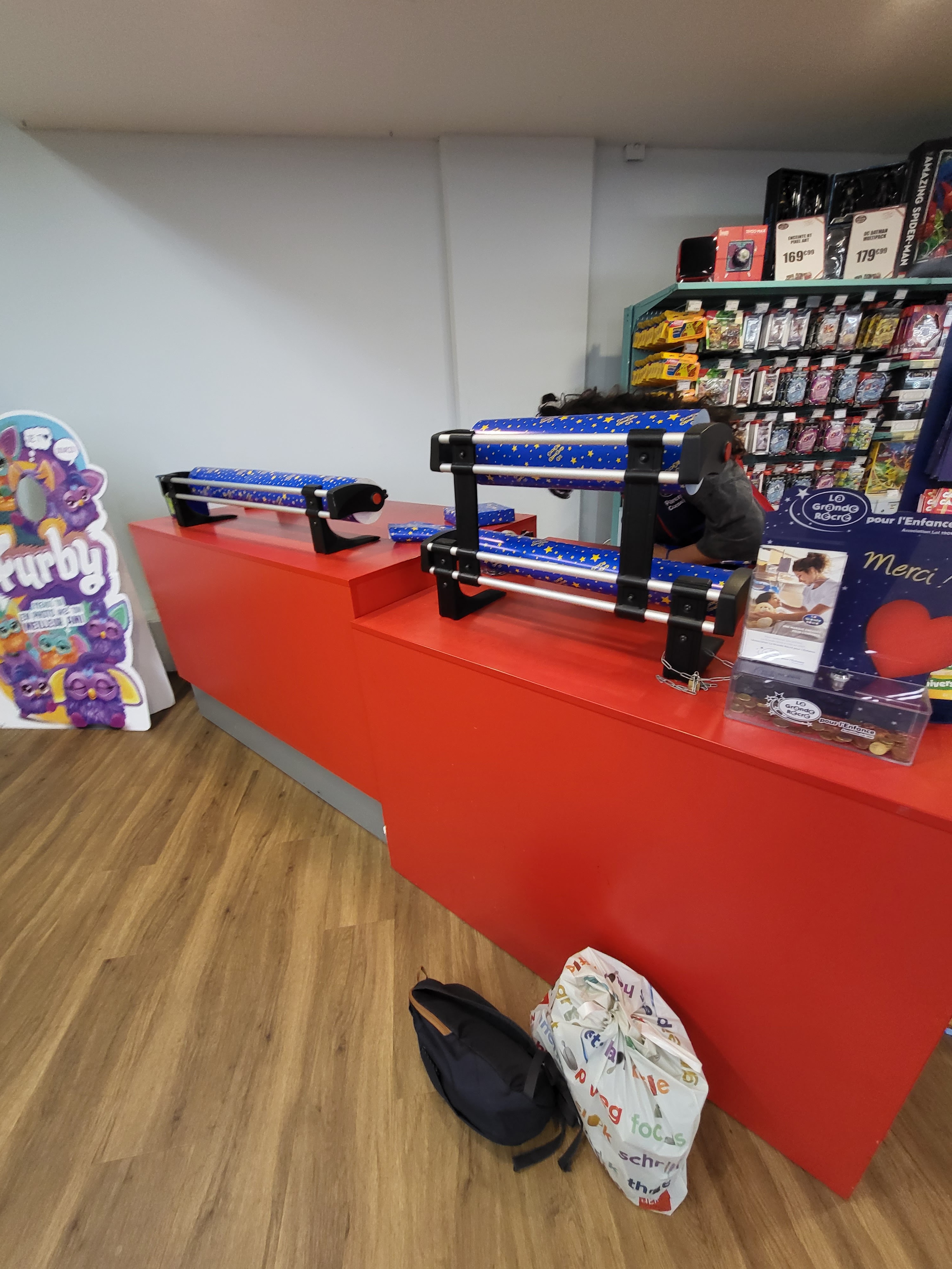 A fuir!!!!! Je suis venu dans ce magasin pour acheter un jouet pour un ami de mon fils qui fêtait son anniversaire. Peu de personnel disponible pour avoir des conseils et de plus, après avoir payé, j'ai demandé un paquet cadeau et impossible d'en avoir un!!! Excuse, les mesures sanitaires!!!! Quel est le problème de faire un paquet cadeau par rapport aux mesures sanitaires??? Pas de paquets cadeaux dans un magasins pour enfants??? je rêve!!!!La vrai raison c'est que cela prend du temps et une boite qui pense seulement à l'argent ne veut pas payer du personnel pour faire des paquets cadeaxu alors que c'est justement le paquet cadeau qui fait aussi la magie d'un jouet!!! Par contre le fait de proposer à la caisse une peluche soi-disant à moitié prix, cela est en accord avec les mesures sanitaires???? je ne retournerai jamais plus dans ce magasin...ici les enfants sont seulement des poissons à fric!!!